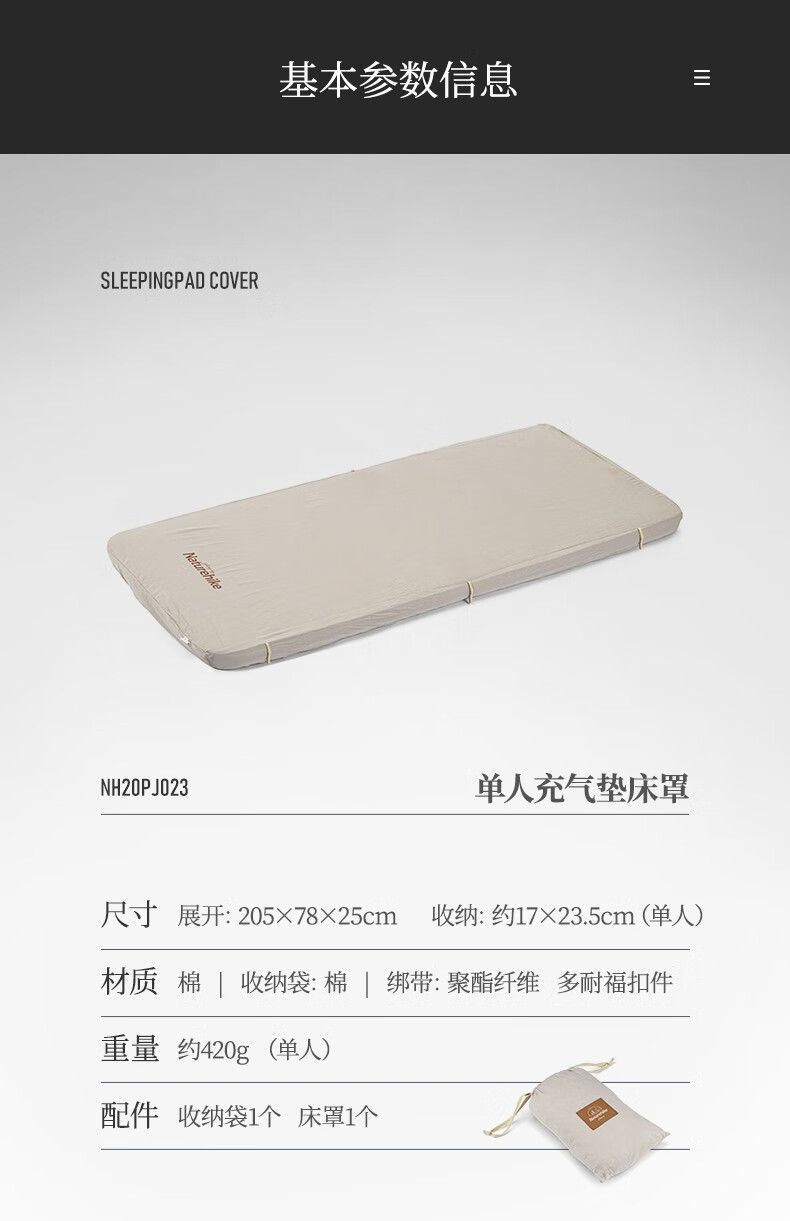 牧高笛(MOBIGARDEN)云漾拉丝充气床 户外露营加高加宽气垫床家用自动充气床 三人床笠/和风沙(不含充气床)