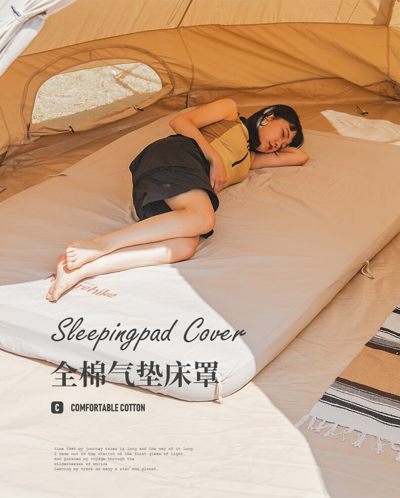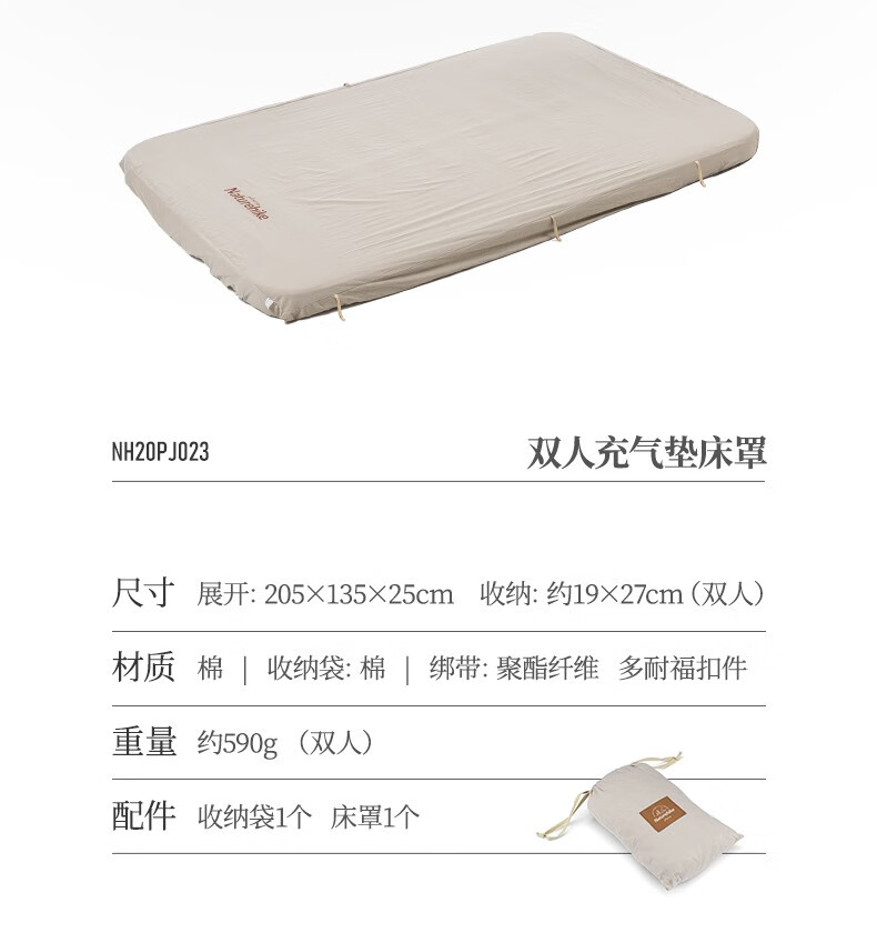 NatureHike挪客 旅行全棉充气垫床罩 户外露营吸湿透气防潮垫罩子 杏仁黄-双人(床罩)