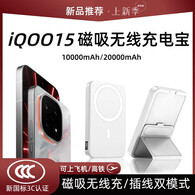 图秃兔【3c认证】适用于vivo iqoo15磁吸无线充电宝新款爱酷15背吸可上飞机大容量20000毫安带支架数显 白色 电量显示-带手机支架 20000毫安时