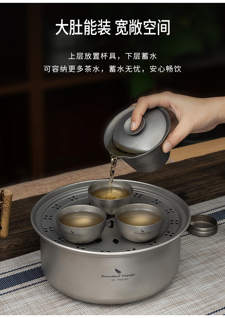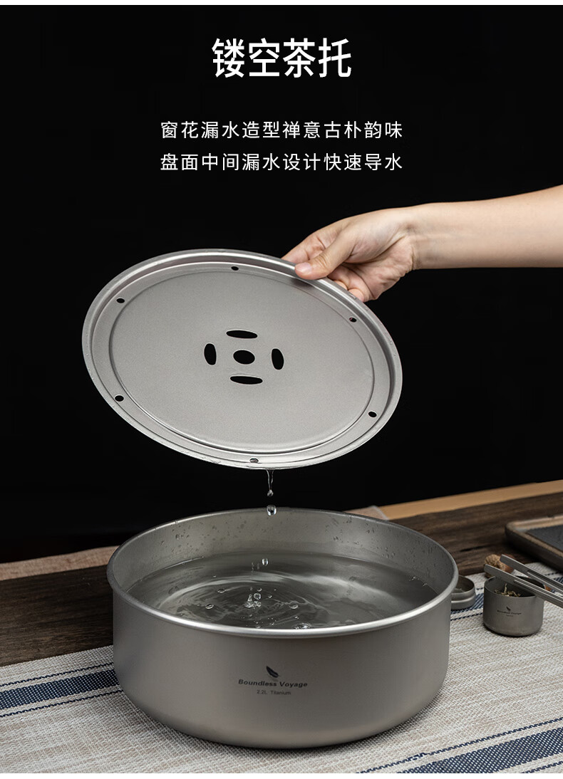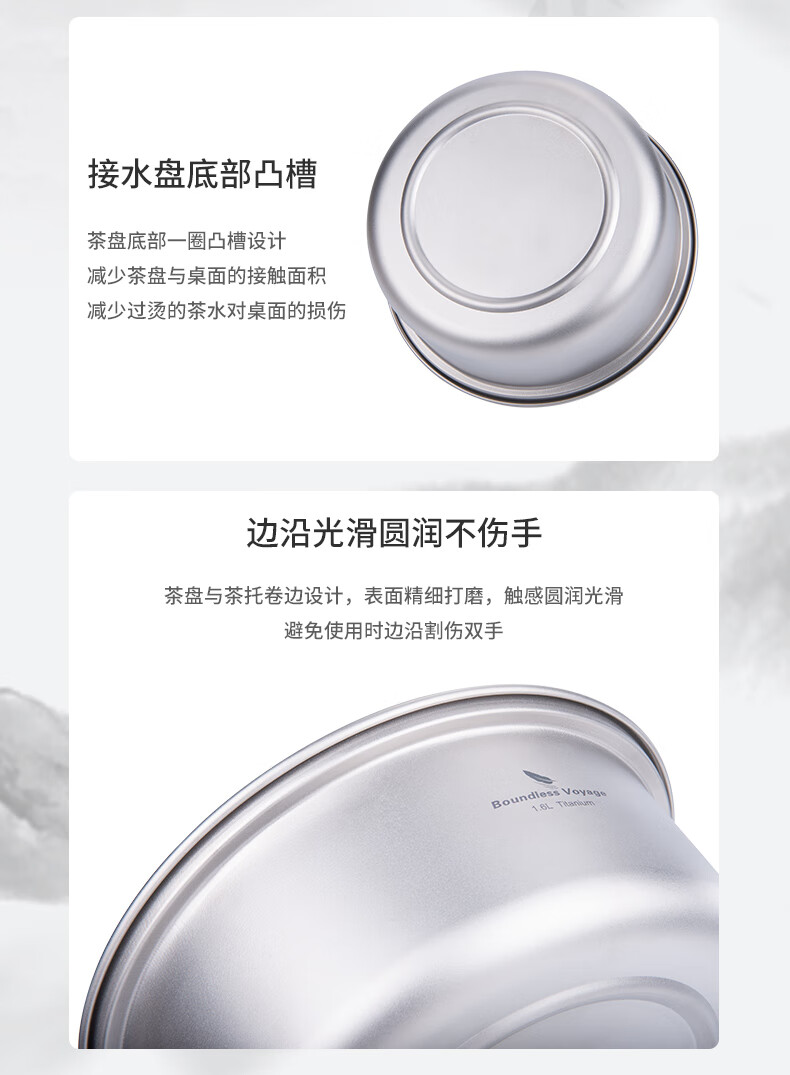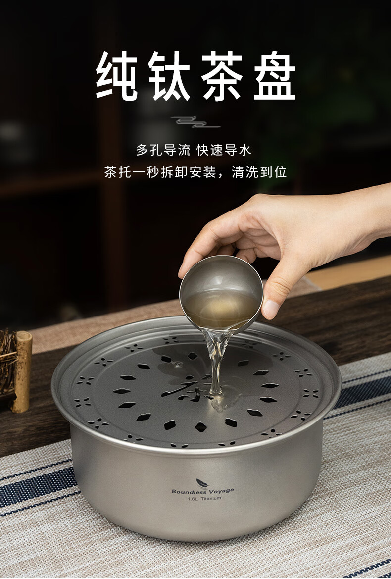 必唯(BOUNDLESS VOYAGE)纯钛户外茶盘露营功夫茶具圆形茶海储水托盘旅行茶托现代小茶台 Ti3214D大号茶盘