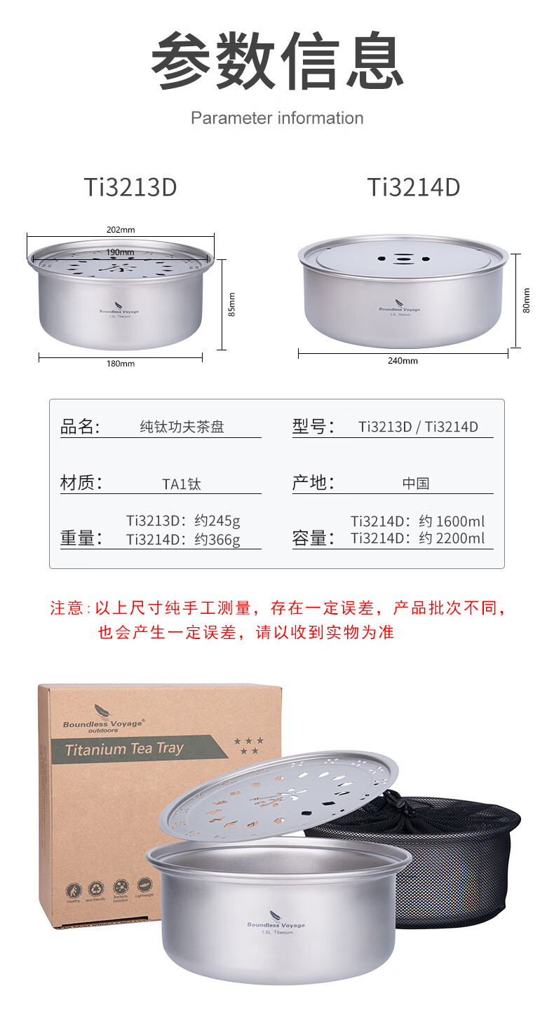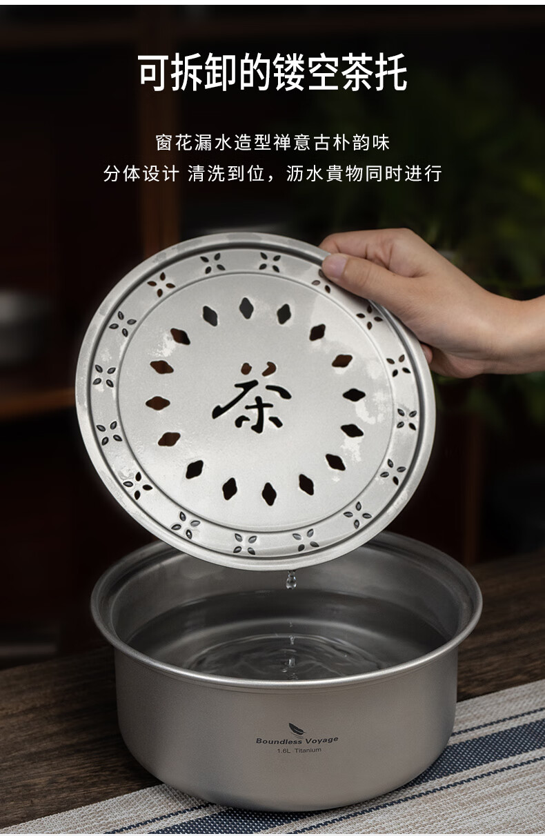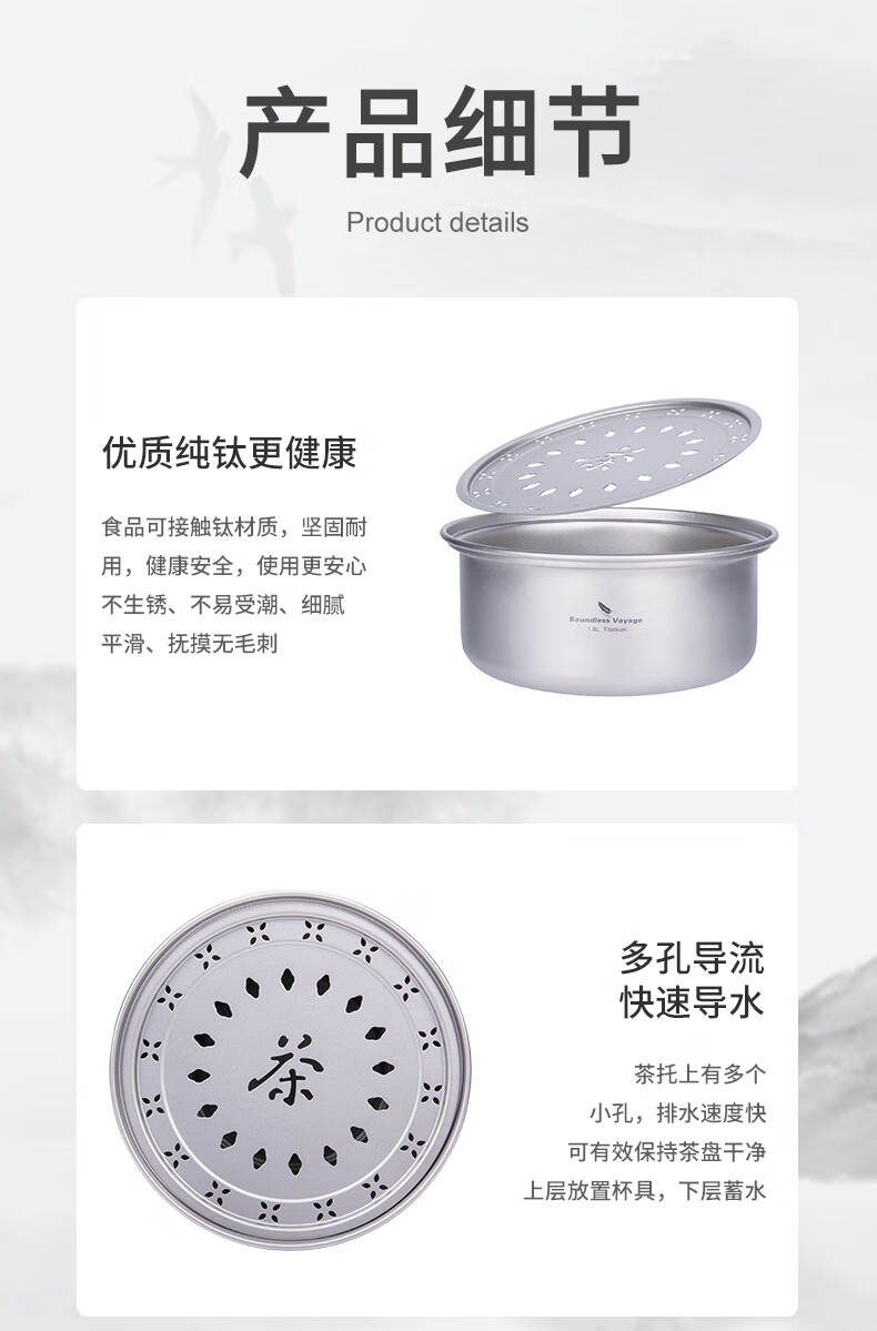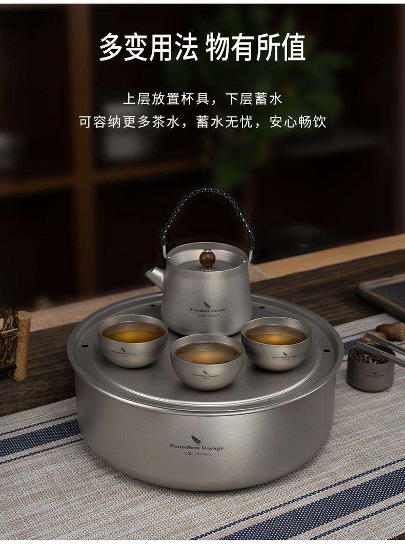 必唯(BOUNDLESS VOYAGE)纯钛户外茶盘露营功夫茶具圆形茶海储水托盘旅行茶托现代小茶台 Ti3214D大号茶盘