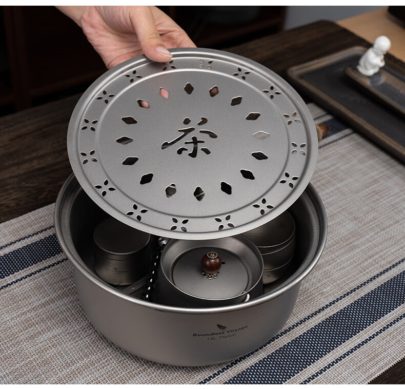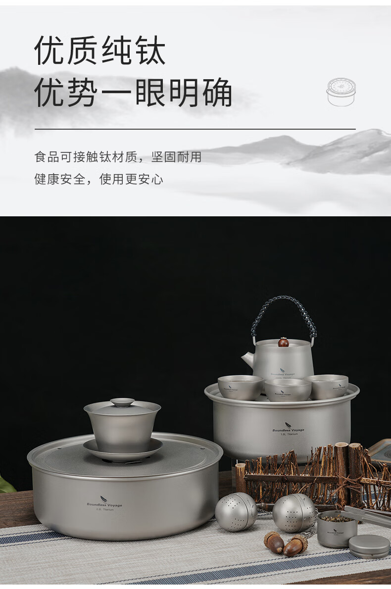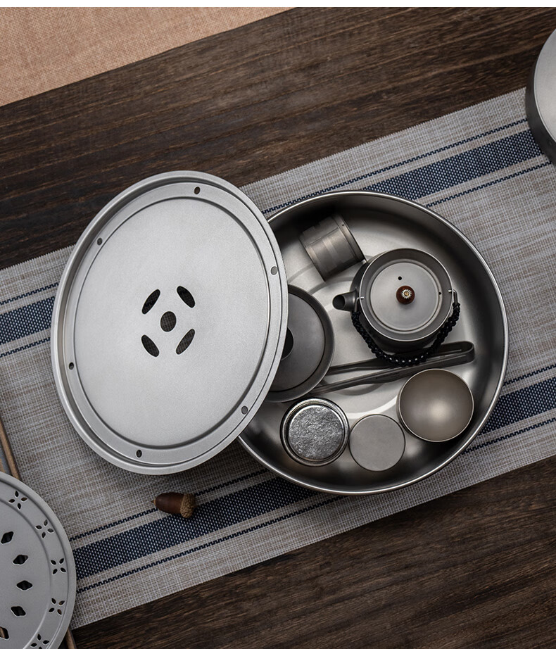 Ti artisan钛工匠户外纯钛茶盘茶海便捷式野营旅行家用圆形茶台茶具茶杯套装 纯钛茶具套装一(一体收纳)