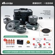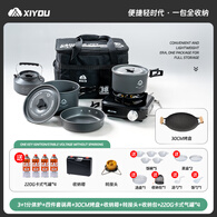 嘻由分体式卡式炉锅具三件套卡磁炉厨房套装全套带锅户外露营全套装备 分体炉+收纳包+新4件套+烤盘+4气 【液态灰3+1稳压分体炉】