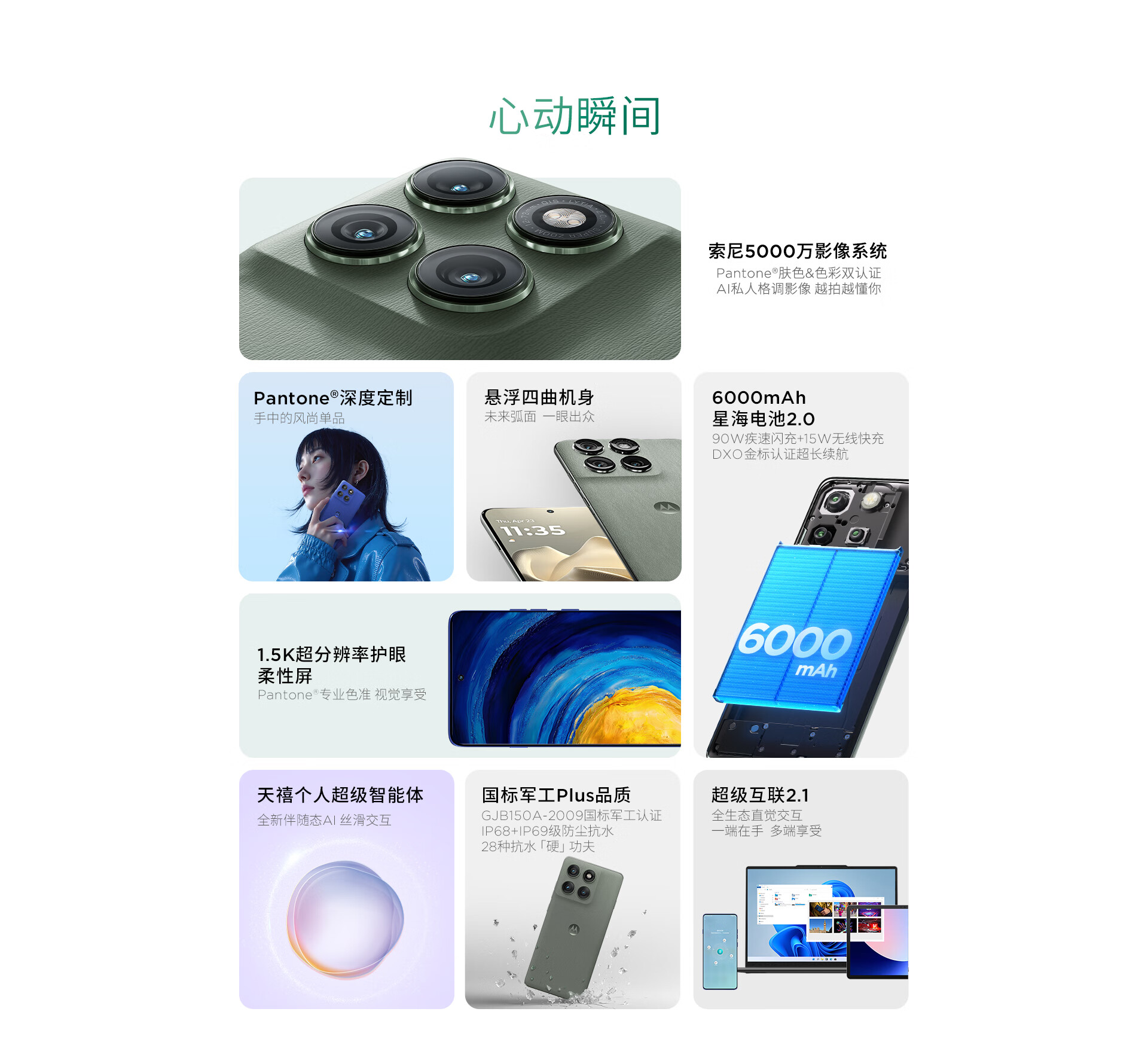 摩托罗拉moto edge 60 Pro 索尼5000万影像系统 6000mAh电池 悬浮四曲机身 5G智能AI手机 谜香甘草 12GB+512GB