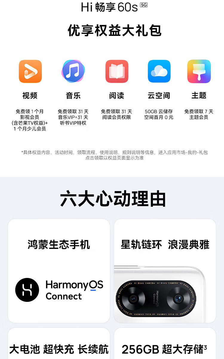 华为智选手机 畅享60S 新品5G手机 鸿蒙生态 6000mAh+22.5W超长续航 全新原装正品 幻夜黑-8G-256GB 官方标配【赠2年店铺延保+90天碎屏保】