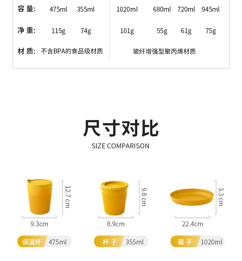 SEA TO SUMMIT 户外露营餐具套装 便携咖啡杯轻量碗碟旅行餐具叉勺子野餐装备 小号碗-600ml(箭木黄)