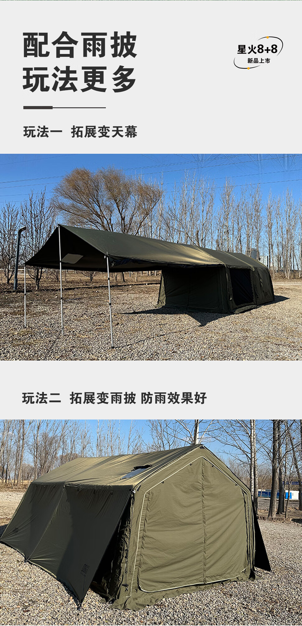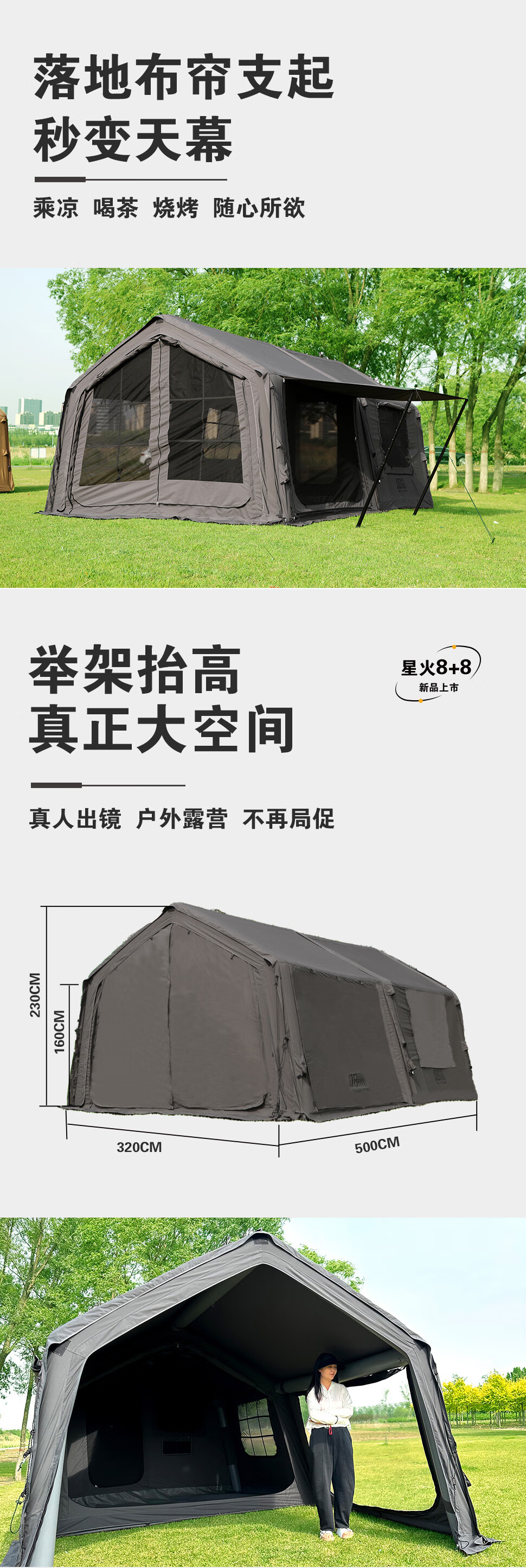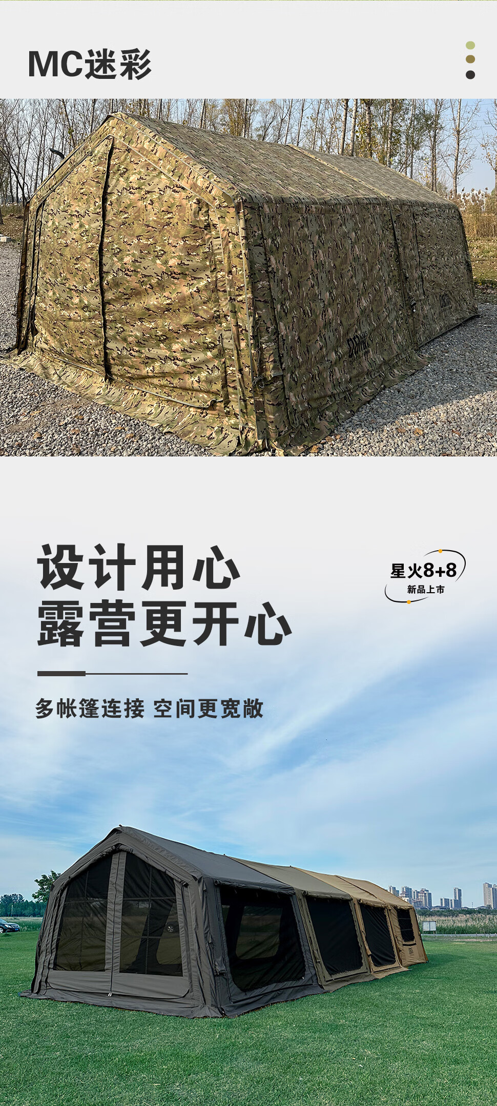 万帐星火【星火16平-MARS08】一室一厅16平充气帐模块可拆卸透气户外露营 【狼棕色MARS08】TC科技棉