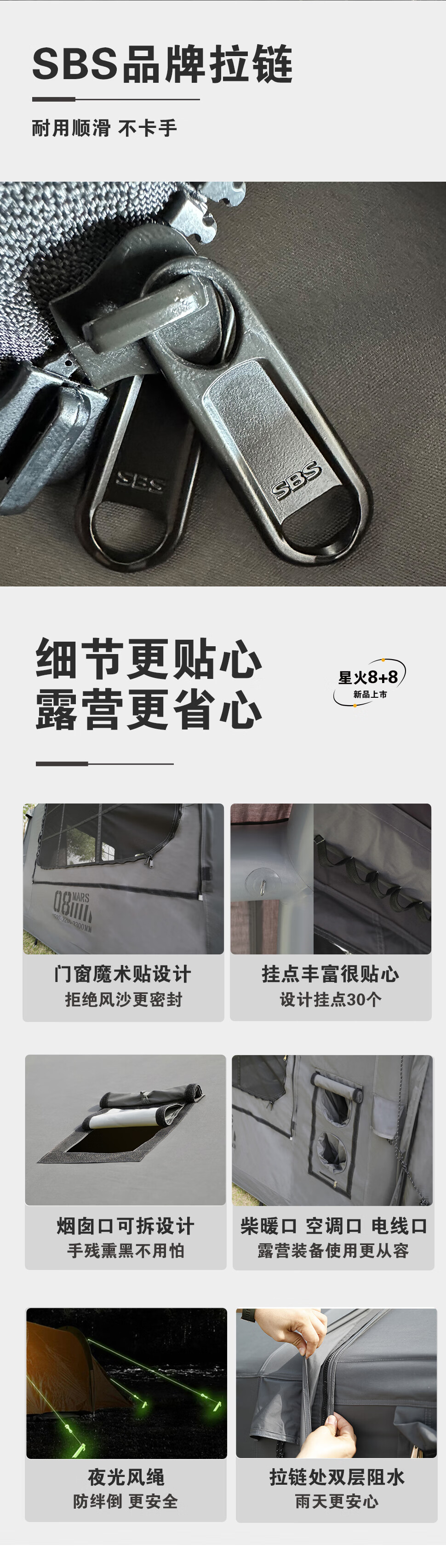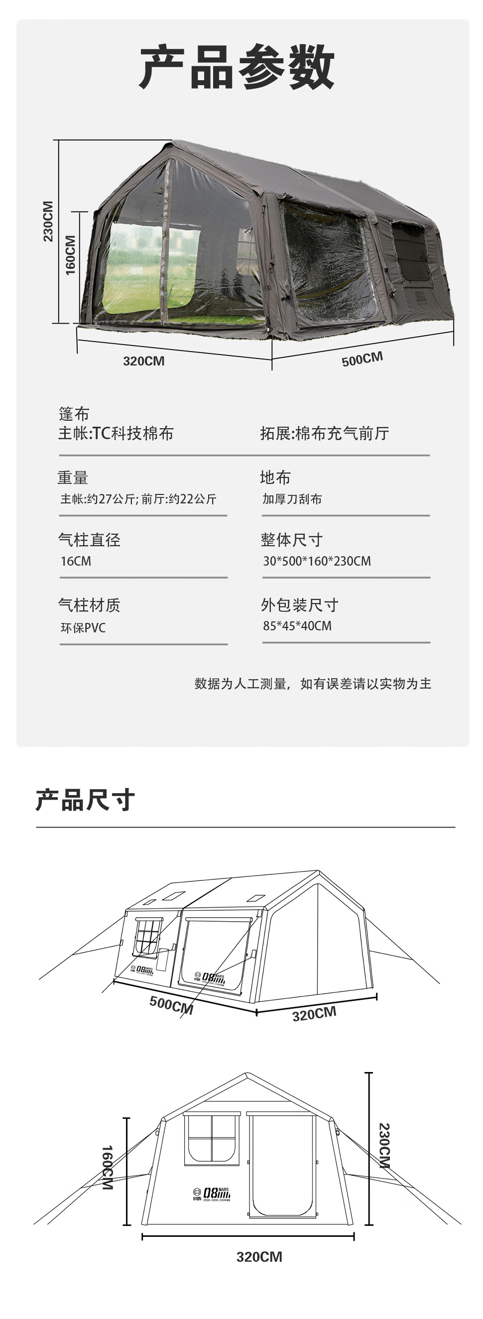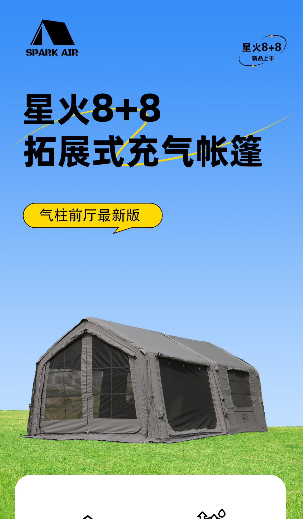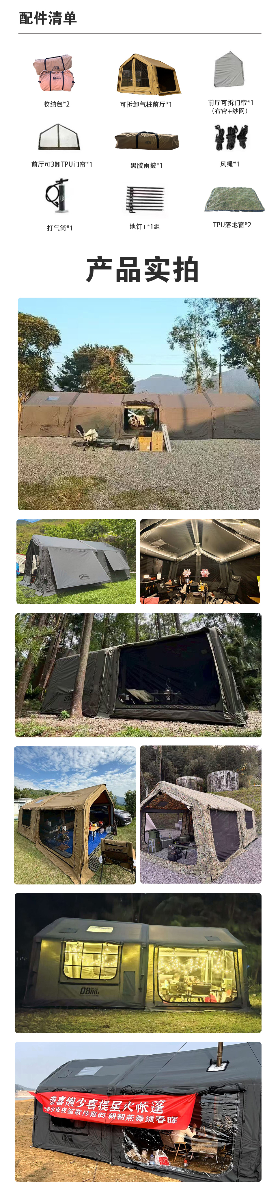 万帐星火【星火16平-MARS08】一室一厅16平充气帐模块可拆卸透气户外露营 【狼棕色MARS08】TC科技棉