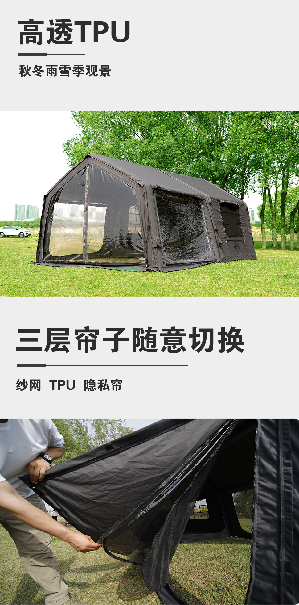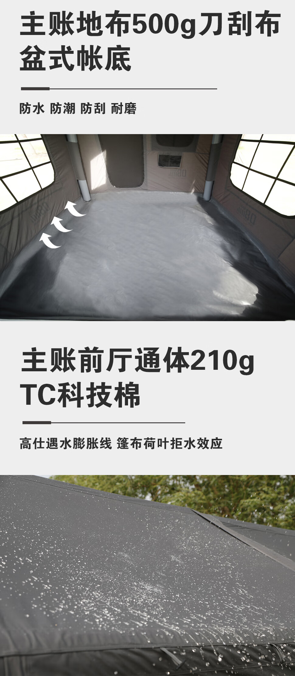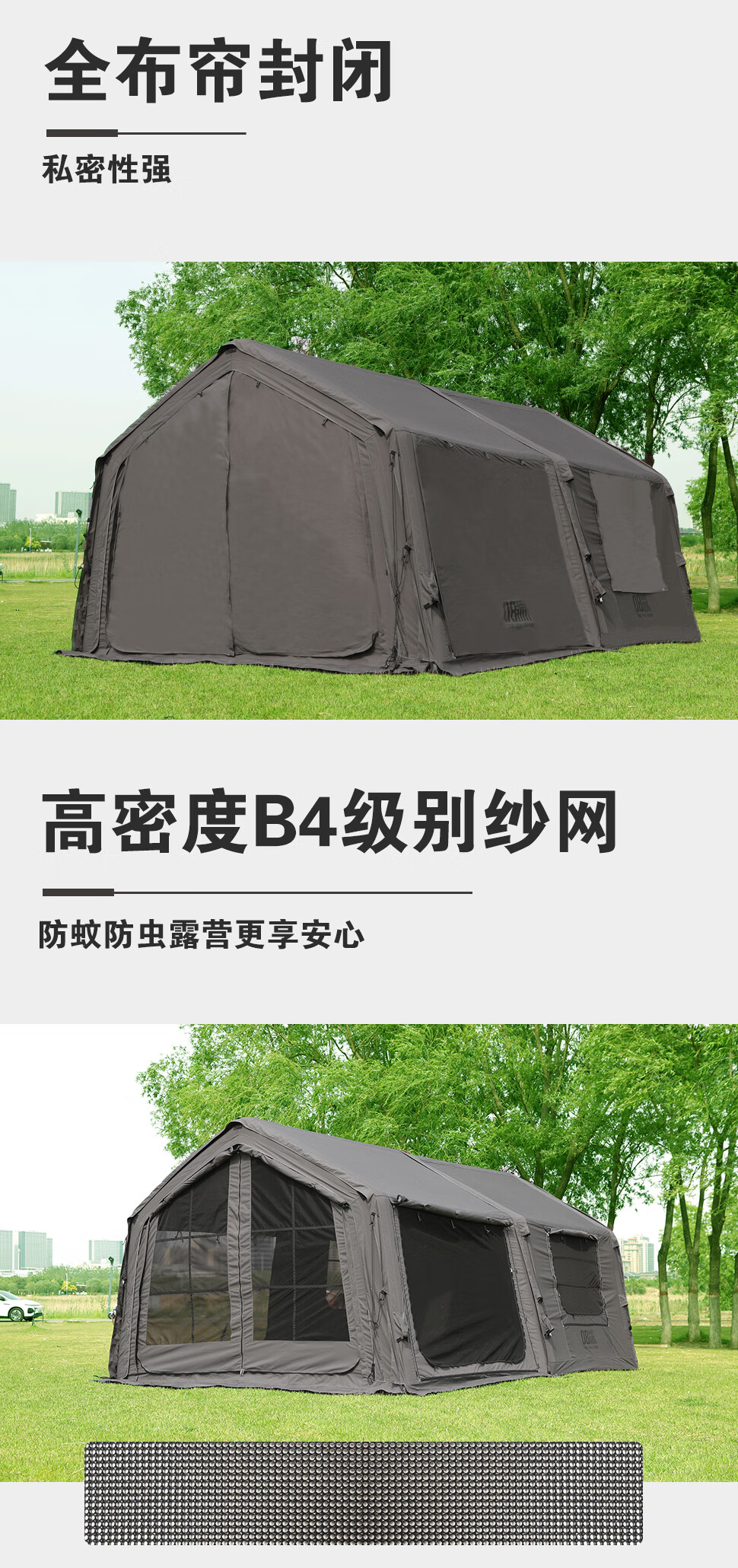 京诚豪斯JcHouse17.2㎡棉布充气帐篷精致露营17.2平户外搬家过夜屋脊 豪斯17.2平米色主帐+黑胶天幕