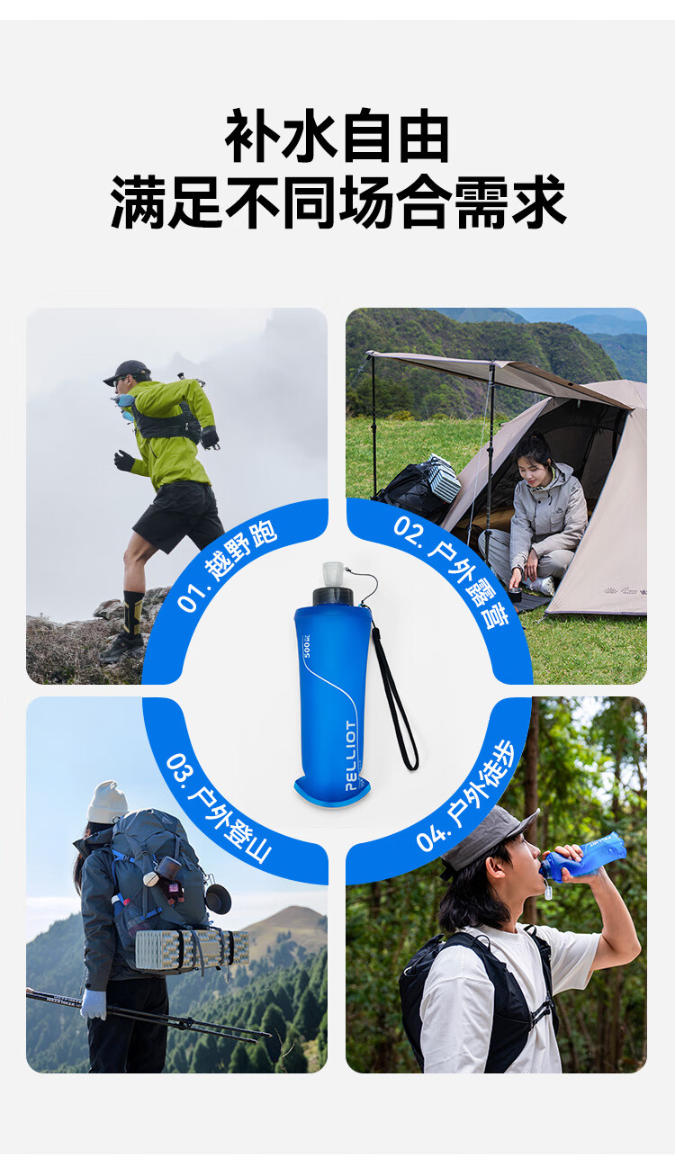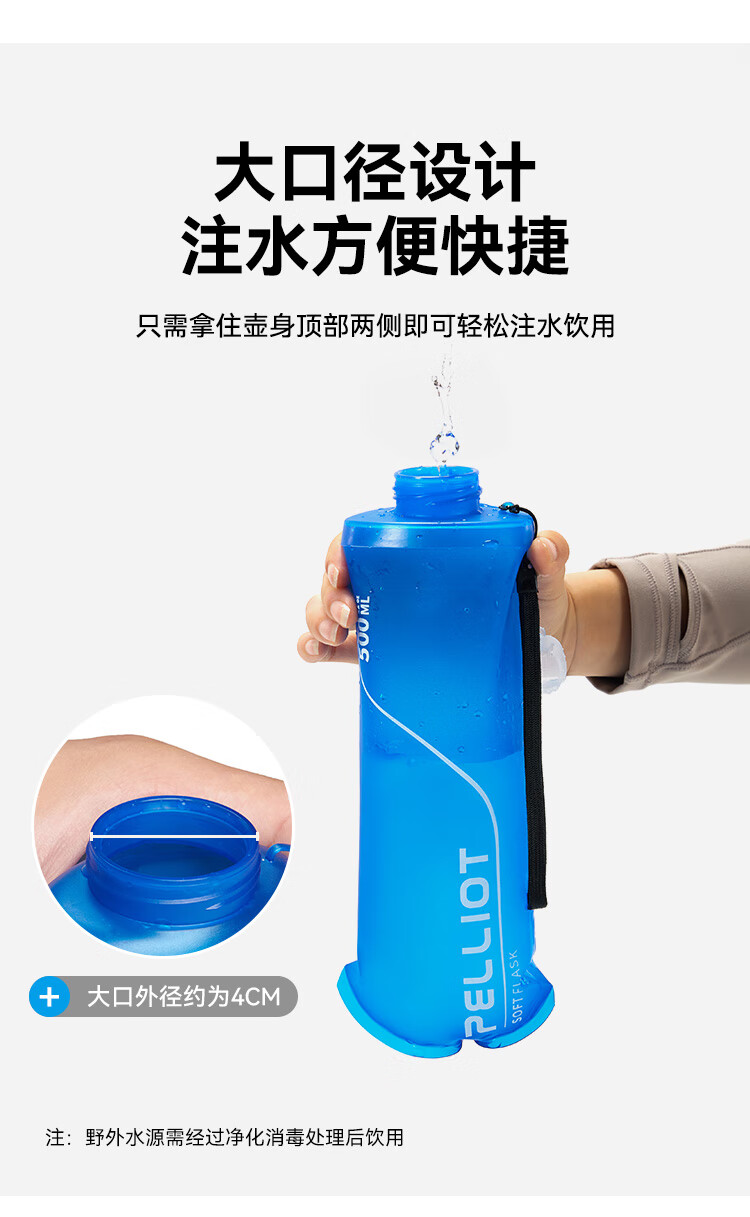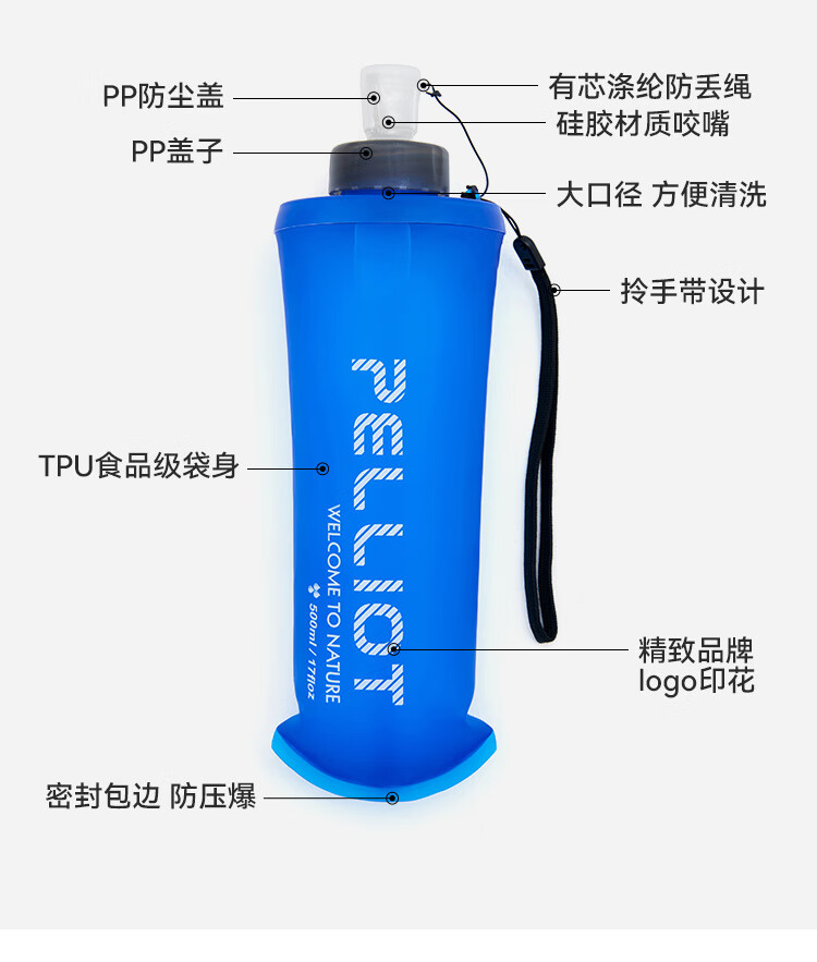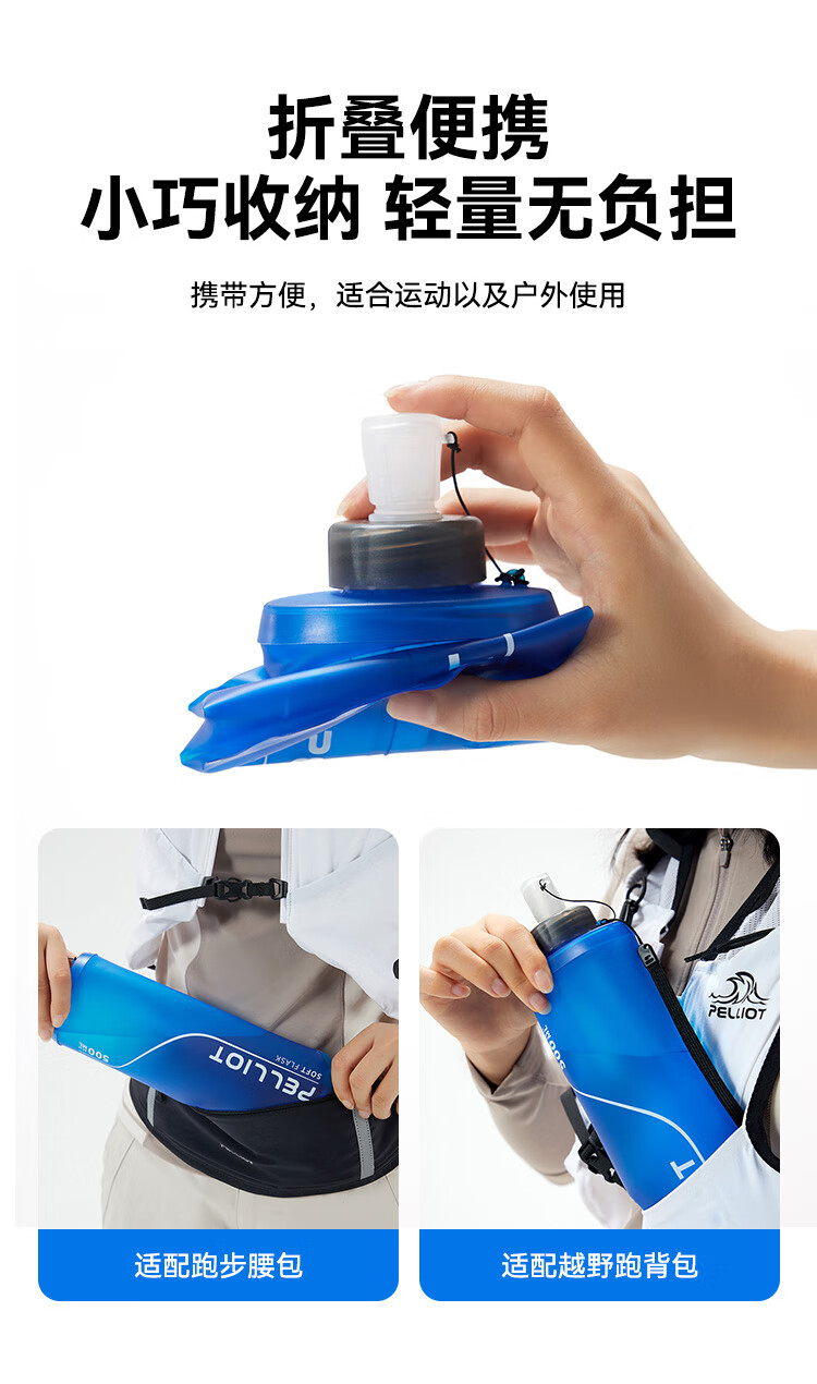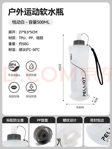 伯希和(Pelliot)户外软水袋运动跑步登山徒步折叠便携软水瓶软水壶16404445悦动白