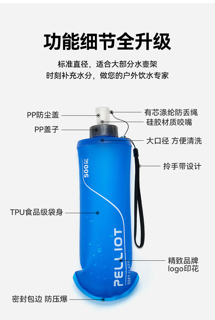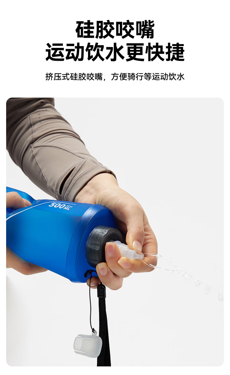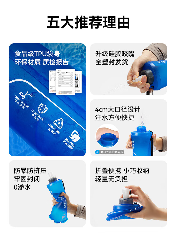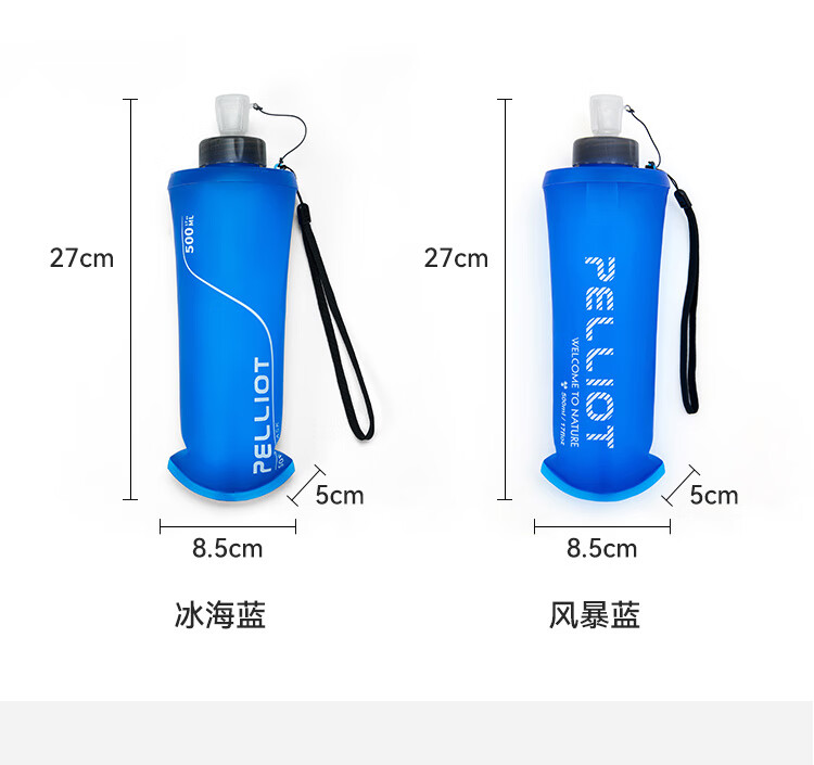 伯希和户外软水壶折叠便携登山徒步越野跑骑行运动爬山跑步软水袋 冰海蓝500ml 【倒置不漏水】