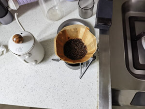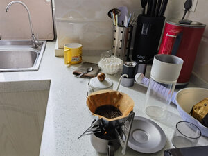 柯曼出品的,用料扎实,颜值在线。安装后虽然有些小摇晃,但放到咖啡杯上后就好了而且放上滤纸后也比较贴合。有一点小重,如果用铝合金做得再轻一点就完美了。
