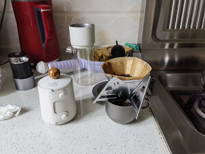不锈钢材质,有分量,不锋利不划手,做工好,厚度重量合适。 拆安都比较方便。安好后有些晃动,不影响使用,放在雪拉杯上较合适 内斗稍小,滤纸露出较多 配备便携包,收纳后不大,外出携带方便