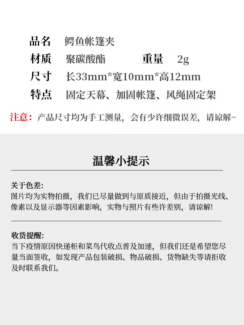 喆炜帐篷固定夹篷布防雨布固定夹遮阳露营户外帐篷天幕挂钩防风固定扣 黑色鳄鱼夹【10个装】