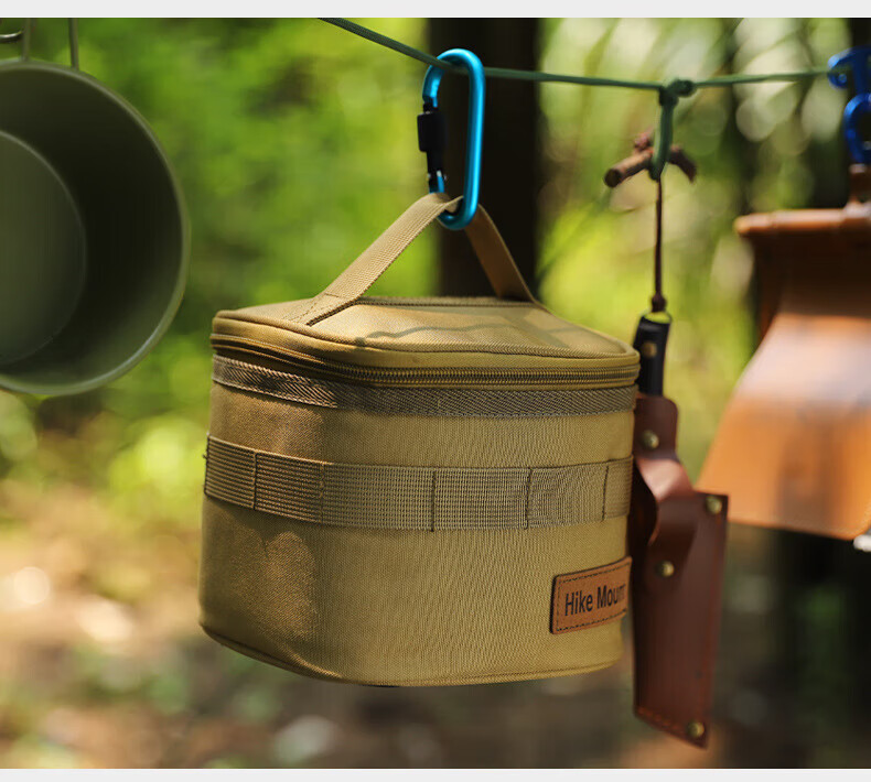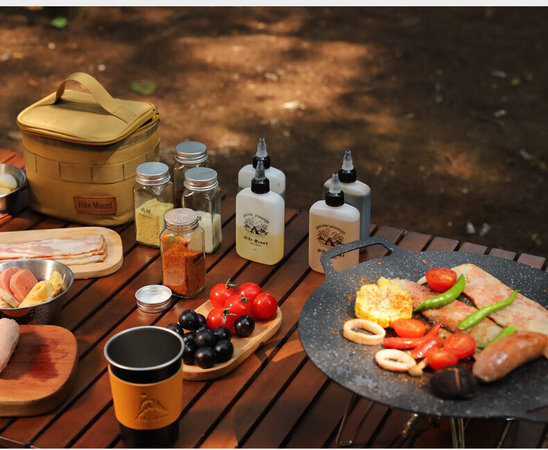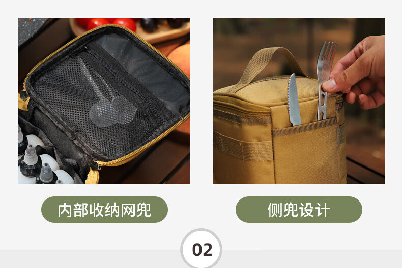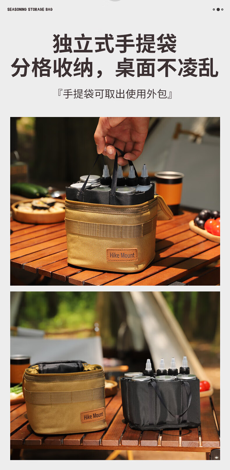 赫北营户外露营便携式调料收纳包露营野炊烧烤酱料调味料气罐收纳包冰包 【九件套】丛林绿
