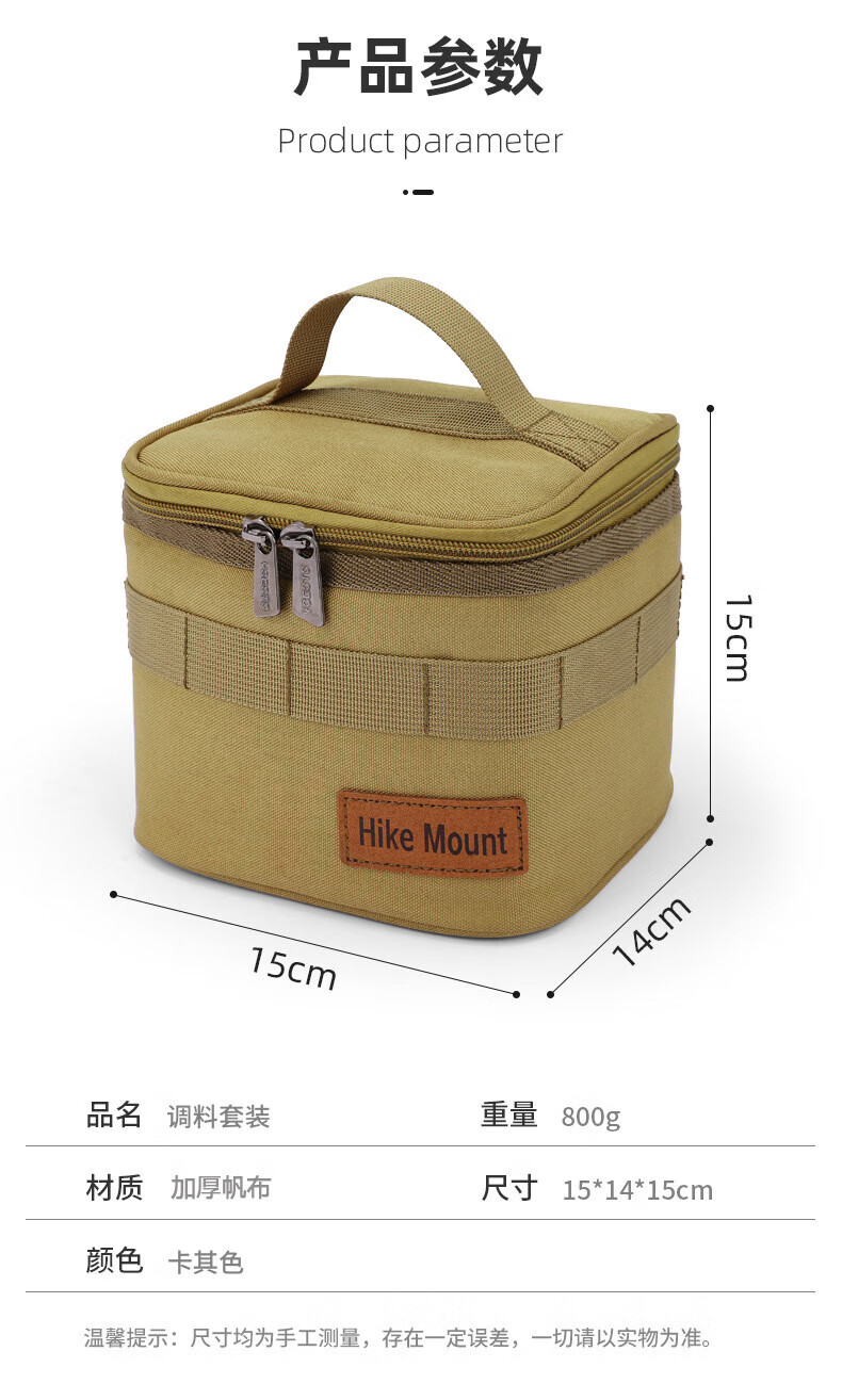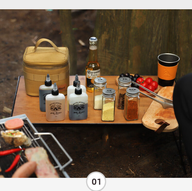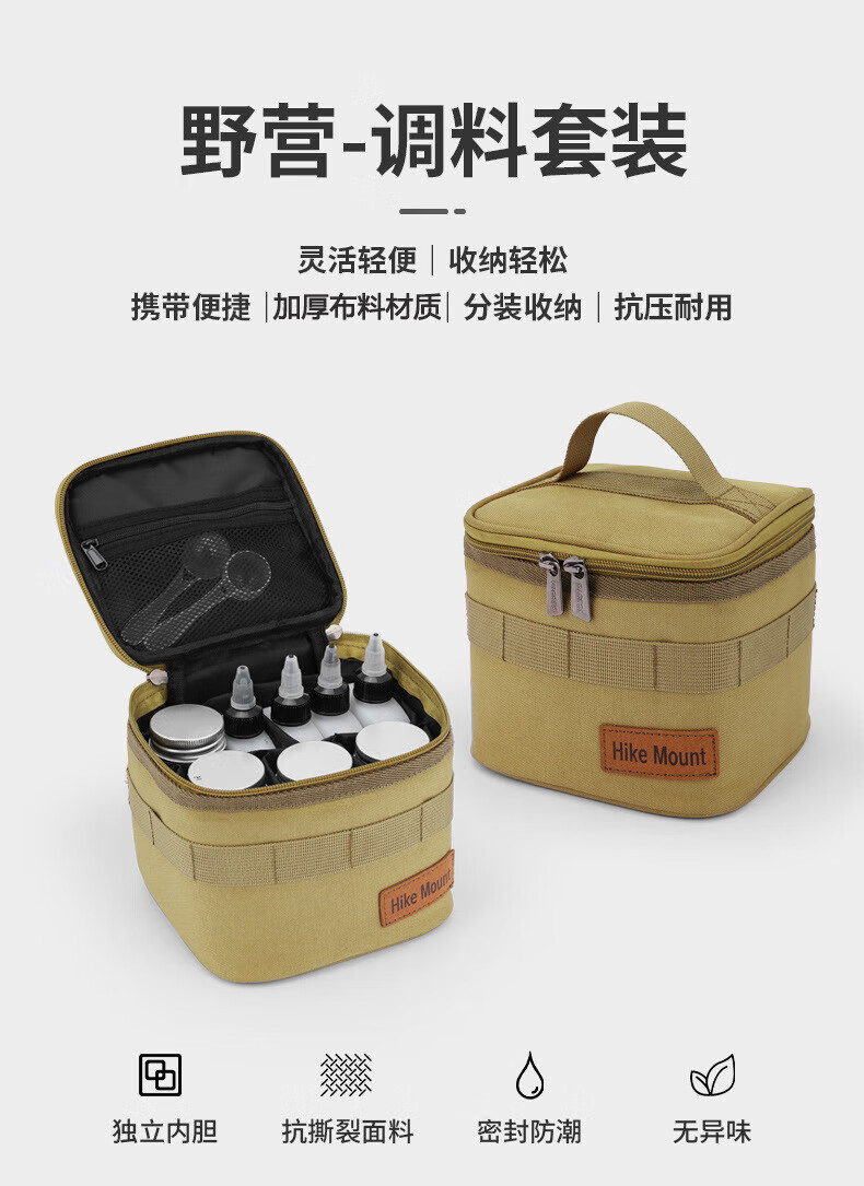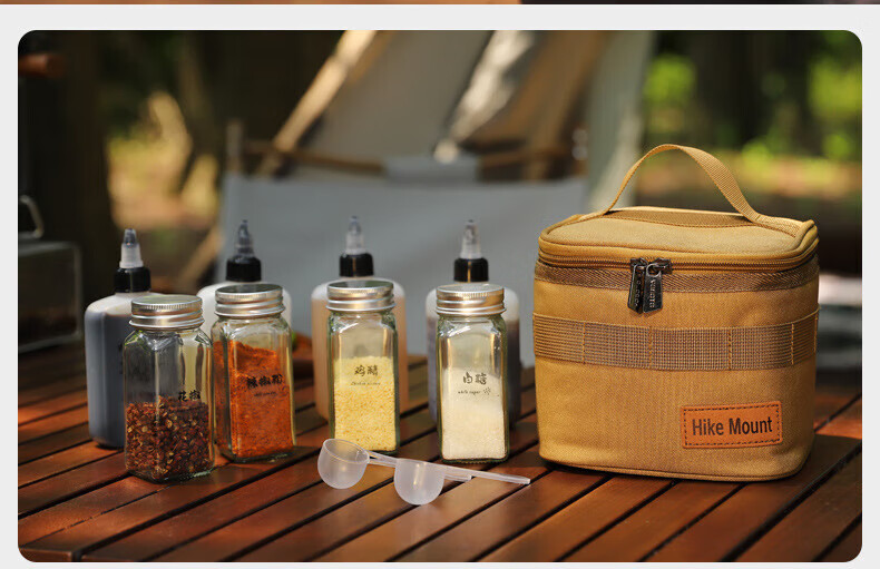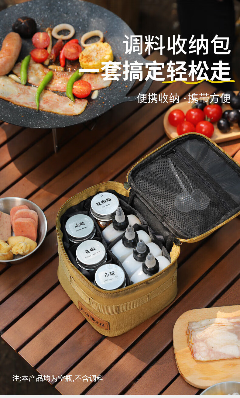 OIMG户外调料瓶套装便携式露营野炊烧烤调料罐组合分装瓶调味料收纳包 卡其色【调味料套装】 【包*1+勺*2+油瓶*4+调料罐*4】