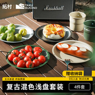 拓村户外野营铝合金餐盘碗便携西餐餐盘露营野炊家用宝宝辅食减脂装备 【铝合金不粘涂层】混色4个装(直径18.7cm深度