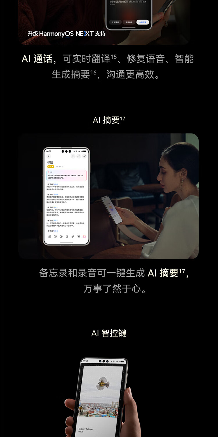 华为Mate 70 Pro+真的让我惊艳!外观设计高端大气,陶瓷机身手感一流,6.8英寸2K+屏幕显示细腻,120Hz刷新率流畅顺滑。拍照方面,XMAGE影像技术让每一张照片都像大片,夜景模式更是无敌。性能上,麒麟芯片搭配鸿蒙OS,运行速度快如闪电,游戏体验极佳。5000mAh大电池续航持久,100W快充回血超快。细节上,IP68防水、立体声扬声器都很实用。总之,Mate 70 Pro+是一款全能旗舰,强烈推荐!