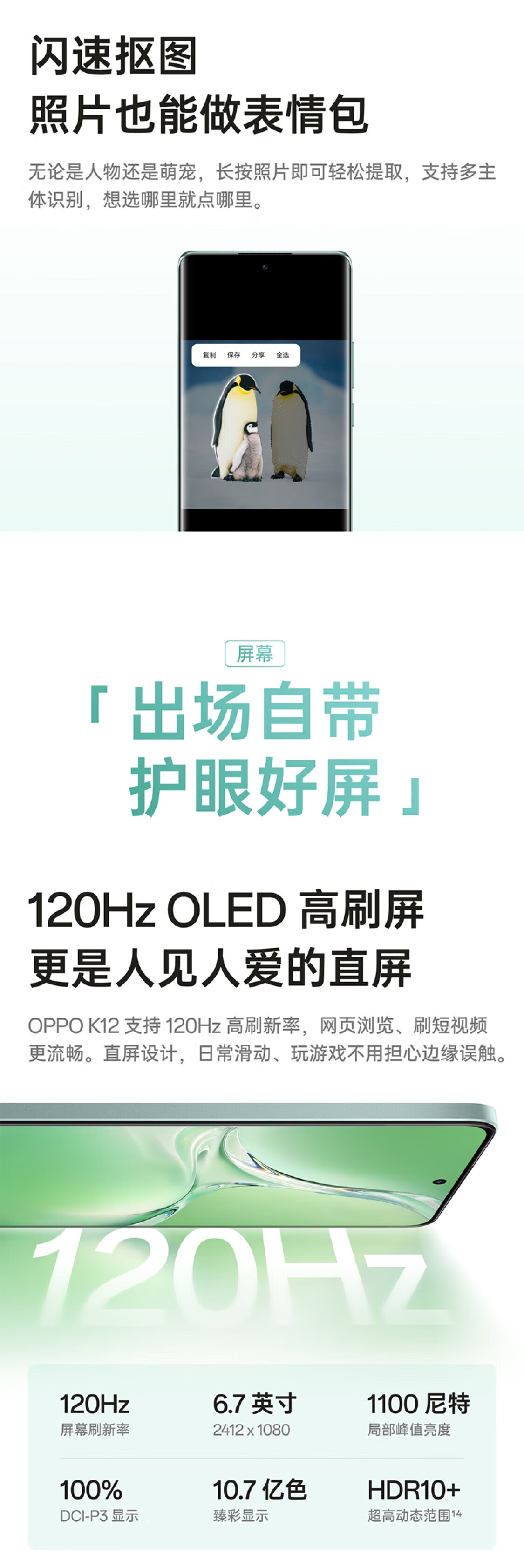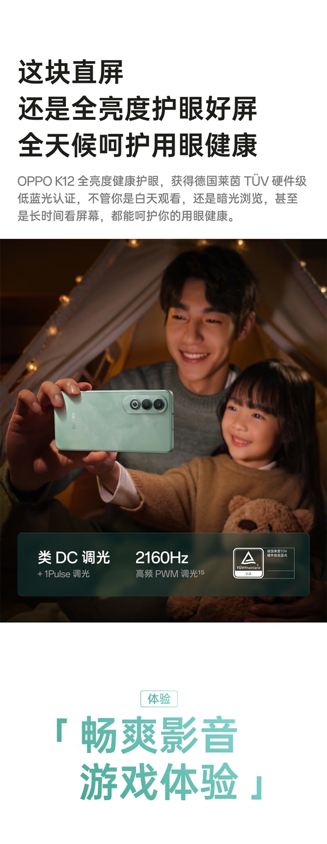 OPPOK12 第三代骁龙7旗舰芯 5G展机闪充超长续航直屏拍照游戏手机 K12 青云 12GB+512GB+白条6期免息 单机+第三方充电器+店保一年