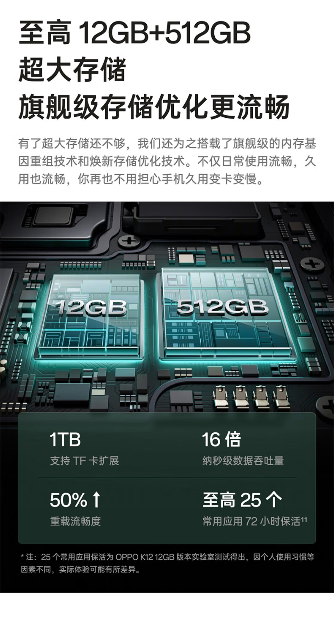 OPPOK12 第三代骁龙7旗舰芯 闪充超长续航直屏5G展机 全网通拍照手机 星夜 12GB+512GB 单机+原装快充+店保1年