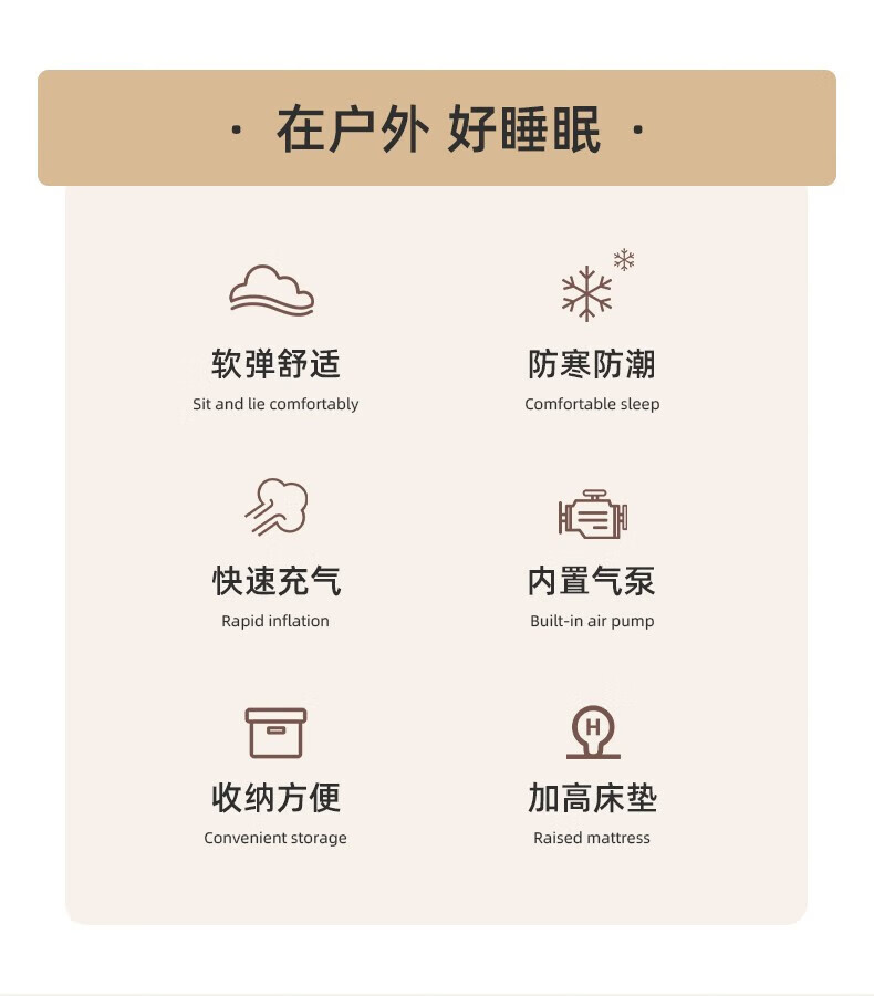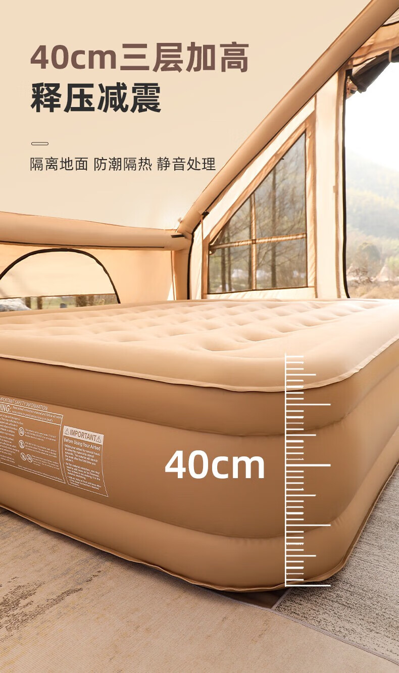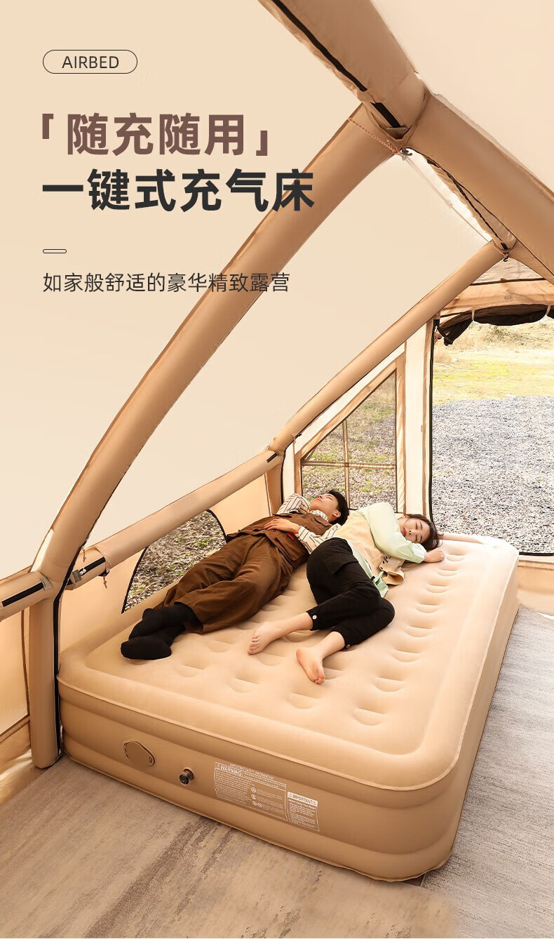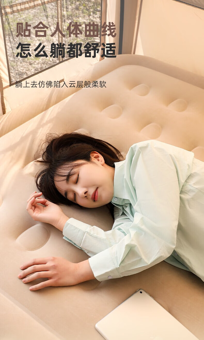 牧高笛(MOBIGARDEN)云漾充气床自动加厚PH26打地铺家用二三人户外露营床便携空气床垫 和风沙-三人/22cm(不含内置泵)