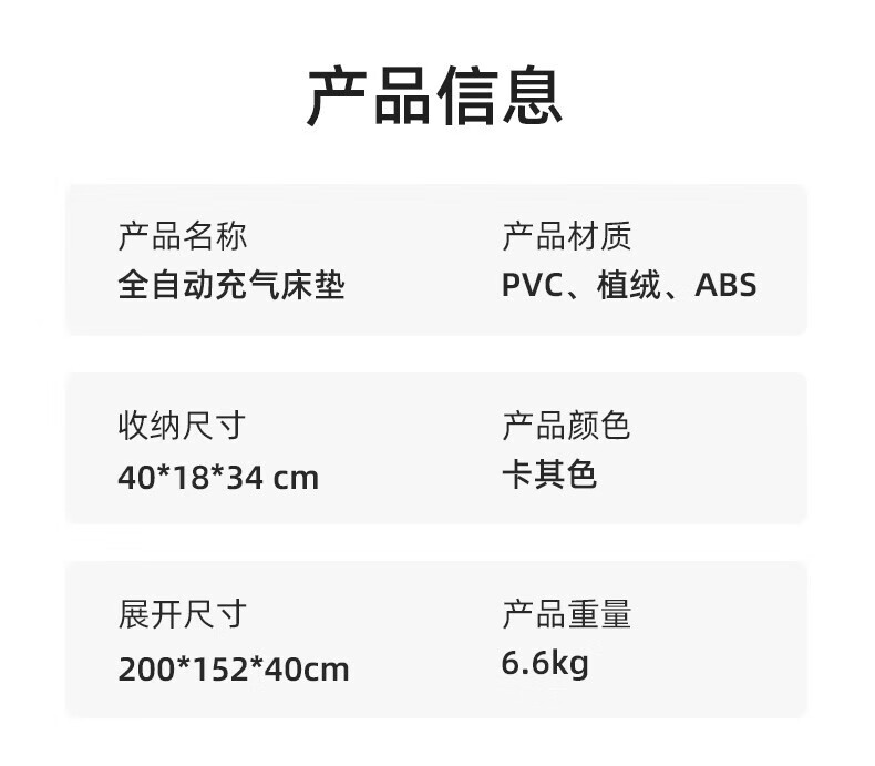 北极狼(BeiJiLang)户外露营全自动气垫床加高加厚充气床40CM折叠床家用午休打地铺 自动款常规双人床-200*150*25CM