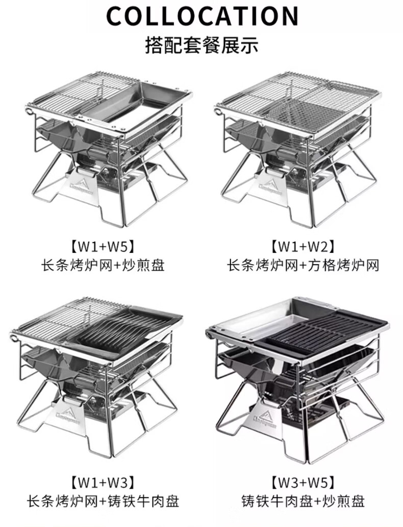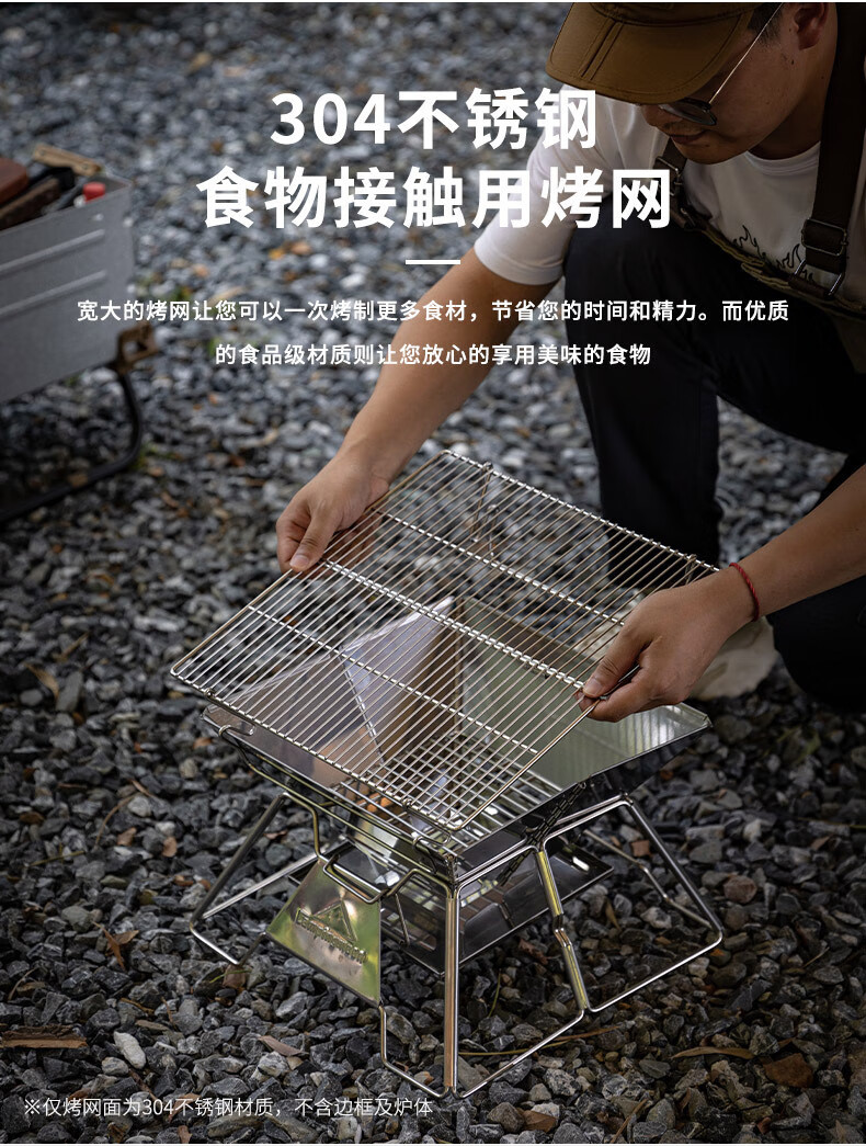 原始人户外烧烤炉便携折叠不锈钢篝火架用品装备焚火台 大号