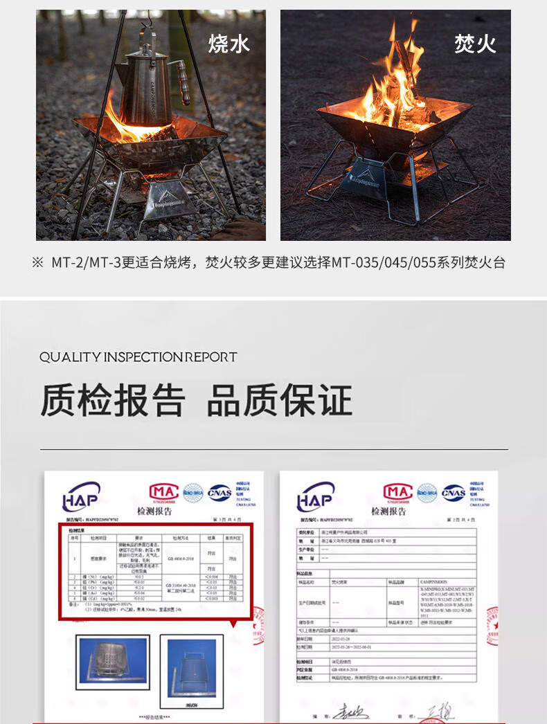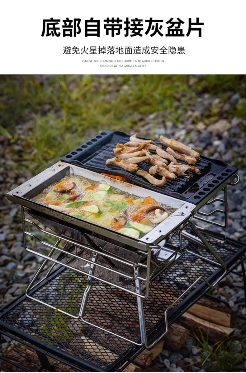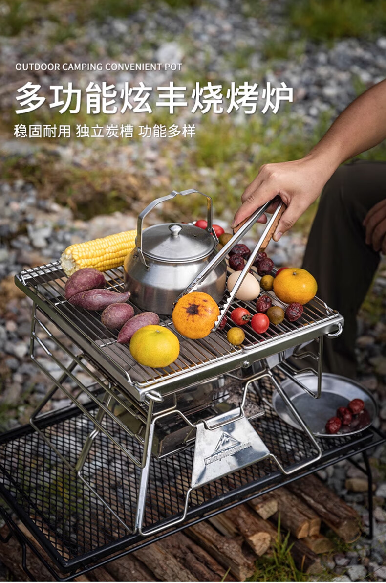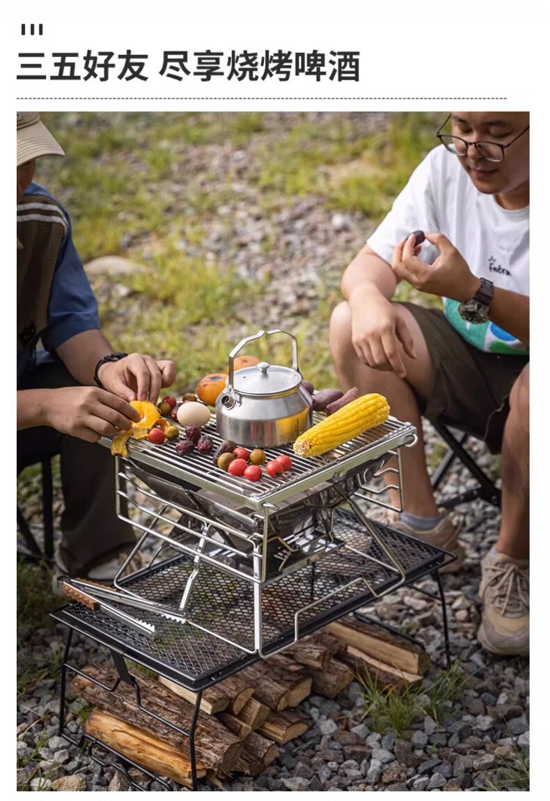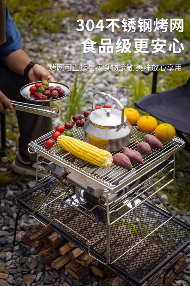 好装备!收纳方便,为露营买的装备。可篝火,可煮茶,可烧烤。以后露营必带装备之一。 接灰盘感觉多余,如果把接灰盘升级到烤盘可升降的性价比就更好了。
