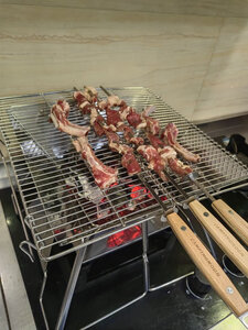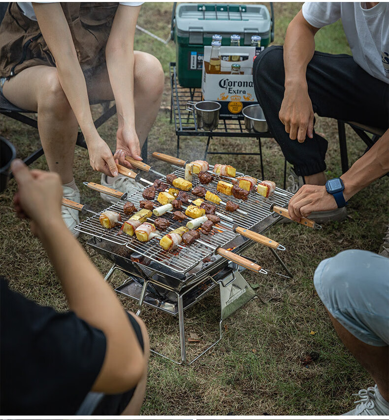 收到货就烤了一次羊肉串:安装方便,正方形烤炉烧烤面积挺大的,烤起来很方便。容易清洗,配了收纳袋装好了不占地方。