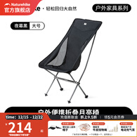 挪客Naturehike超轻户外折叠椅便携钓鱼椅子靠背凳子露营月亮椅 夜幕黑(大号)【加高椅背舒适升级】