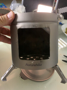 钛炉是真轻,拿在手里非常轻。可惜不是一体成型的,后面是焊接的,好在是在炉子的背面,看正面也看不到。烧的废纸,估计放点炭估计会更好,围炉煮茶。