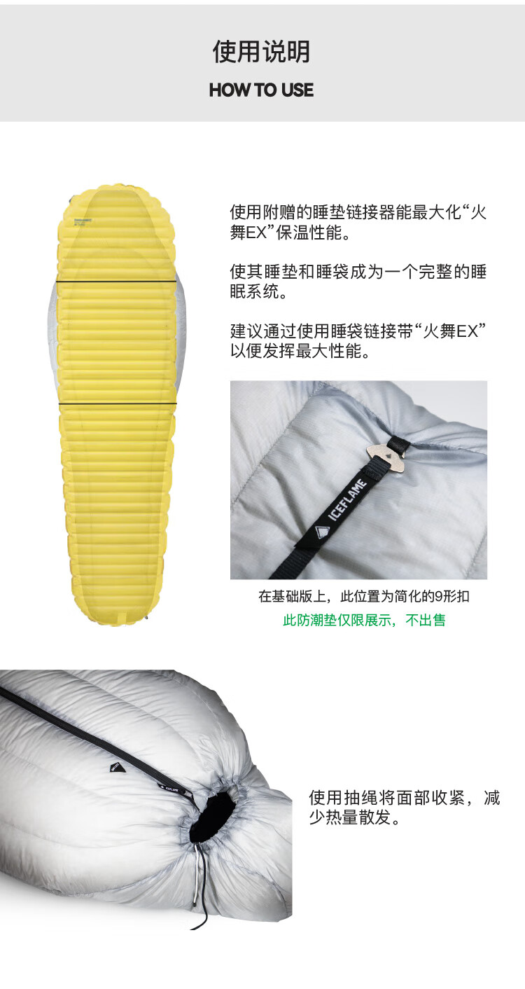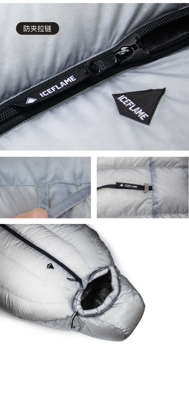 冰焰 ICE FLAME羽绒睡袋火舞木乃伊鹅鸭绒超轻户外旅行露营防寒保暖轻量化多功能 灰白【火舞EX700】M码