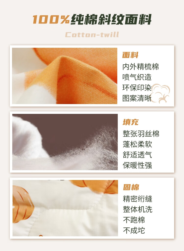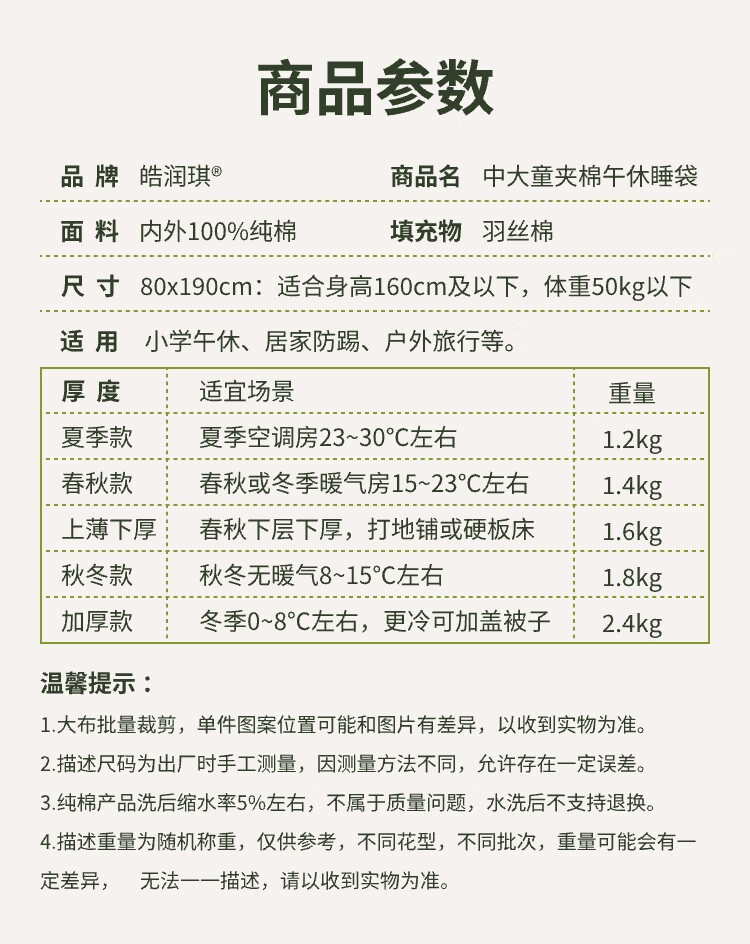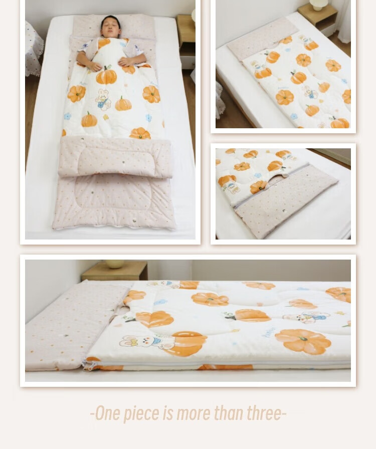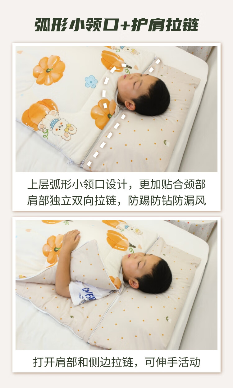 皓润琪纯棉儿童睡袋小学生午休睡觉大童一体式夹棉防踢被可收纳 南瓜贝贝 80*190春秋款