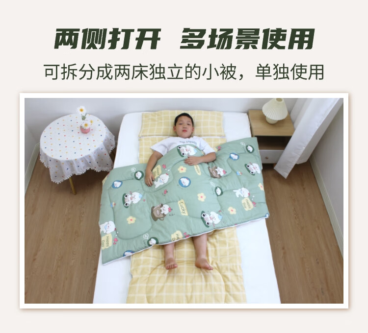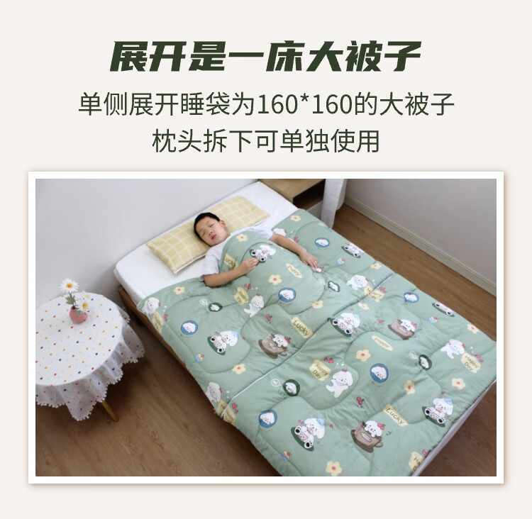 永烁星睡袋成人纯棉秋冬四季款被子学生宿舍单人棉被全棉儿童午睡防踢被 绿萝卜兔【秋冬厚款】 100*225CM
