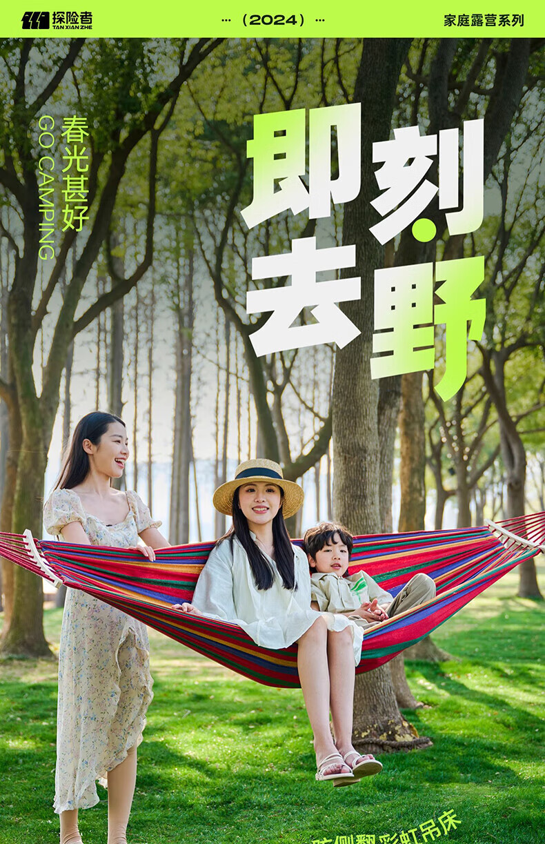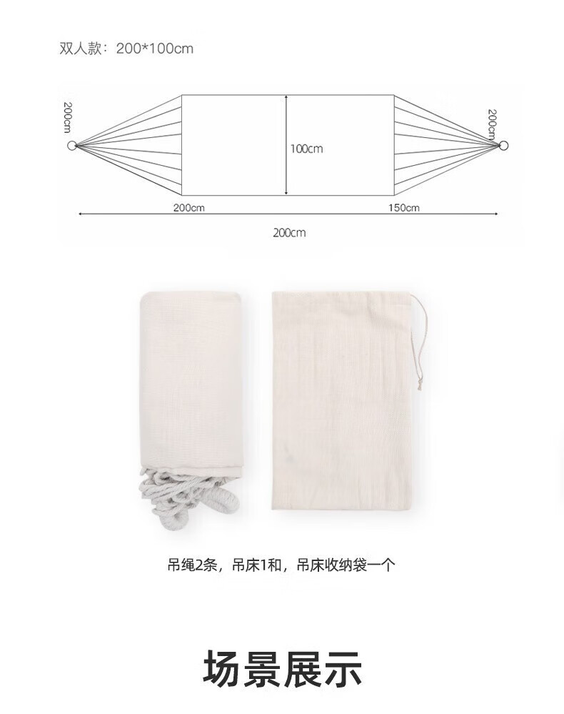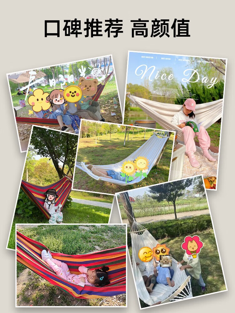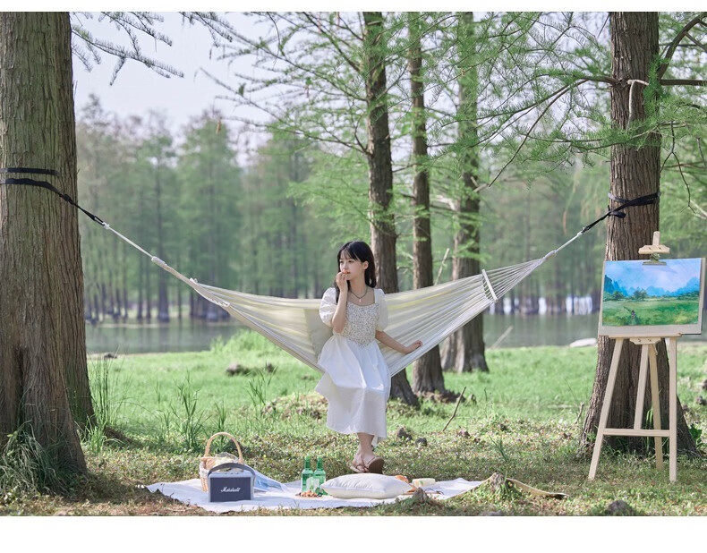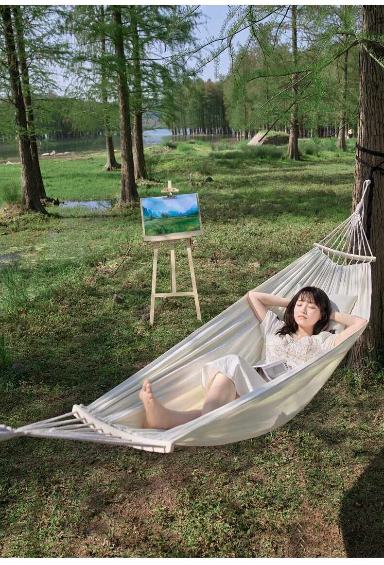 探险者吊床户外秋千防侧翻成人室内家用单双人吊床宿舍寝室学生 单人木架防侧翻米白色