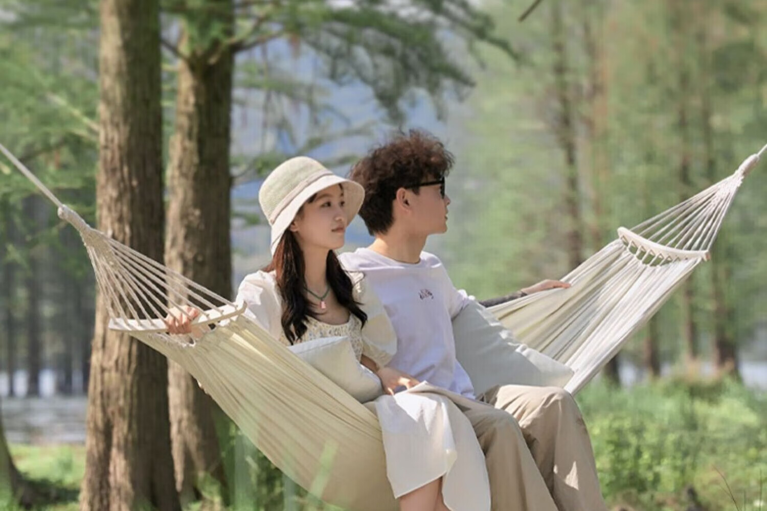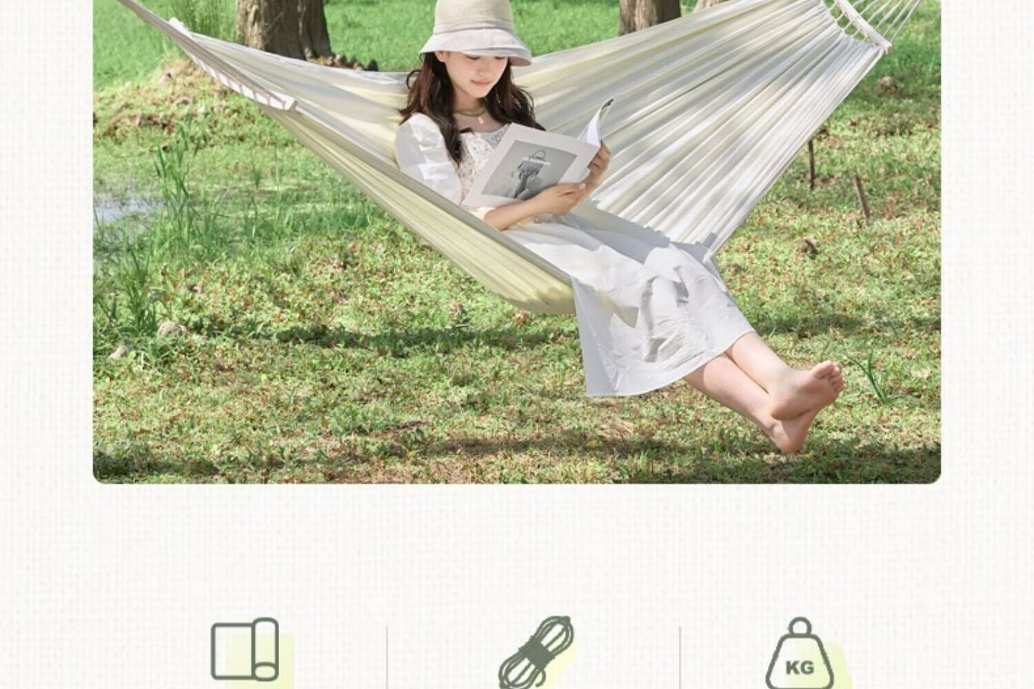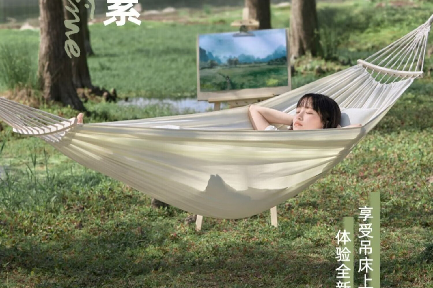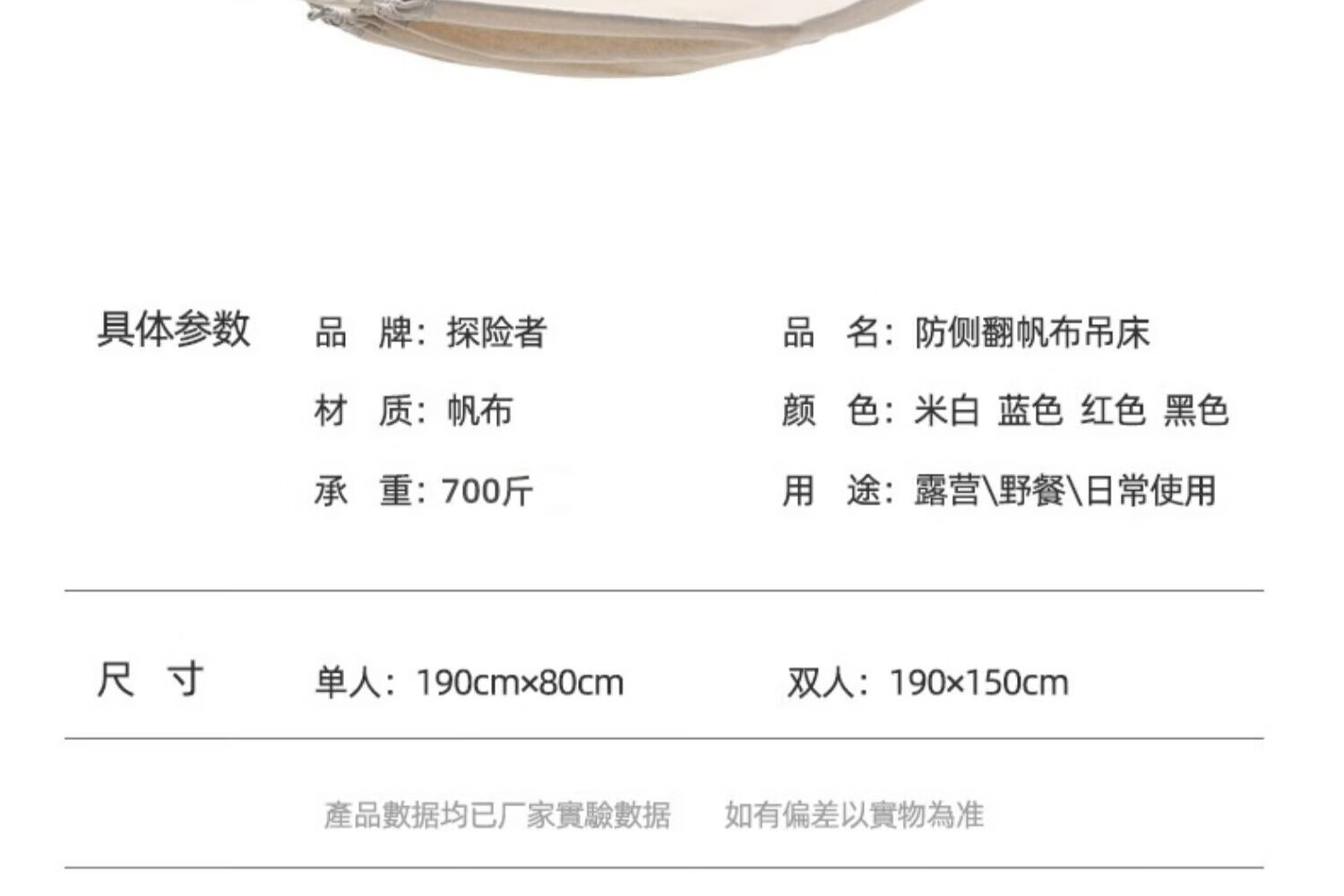 探险者吊床户外秋千防侧翻成人室内家用单双人吊床宿舍寝室学生 单人木架防侧翻米白色