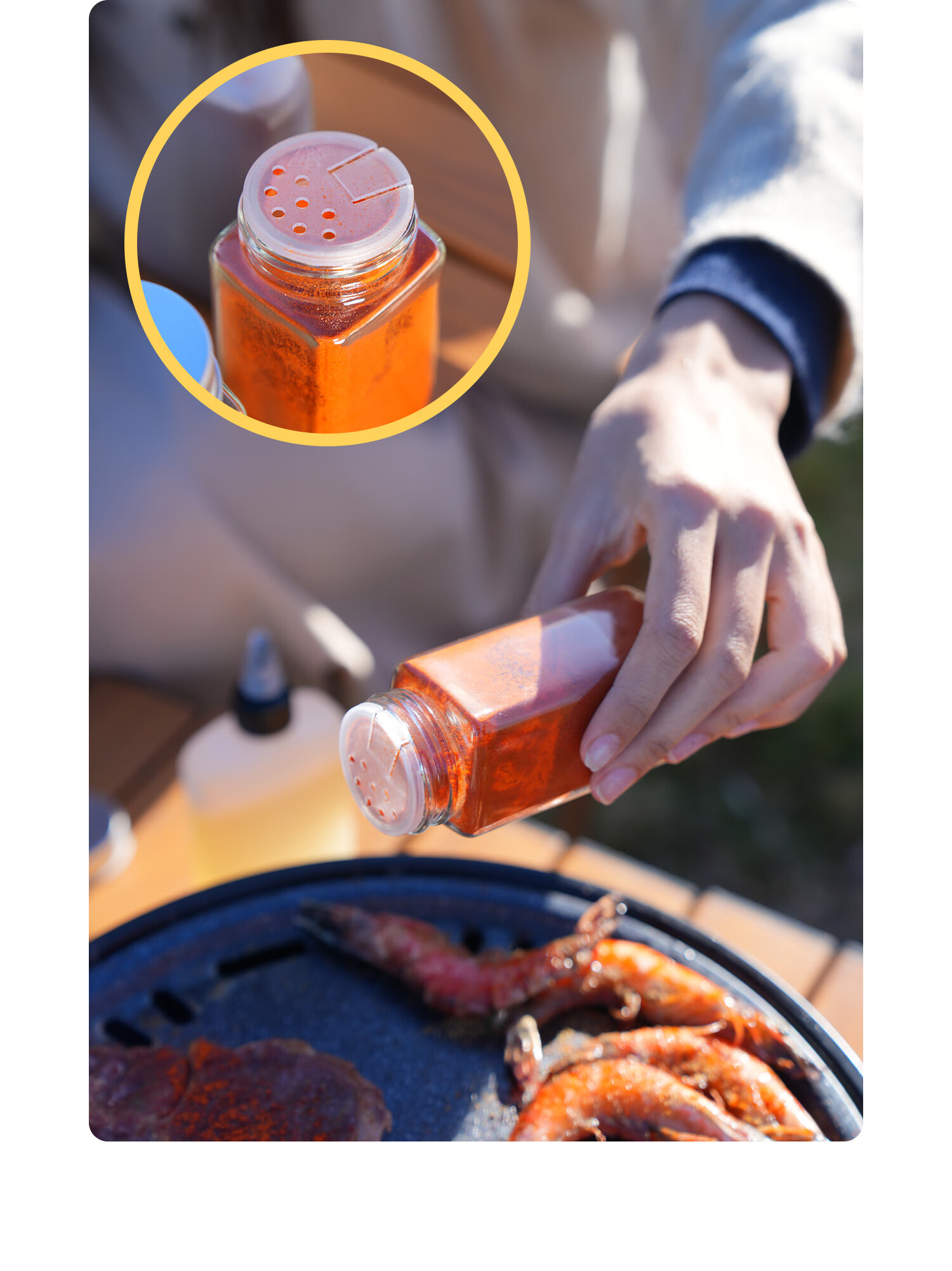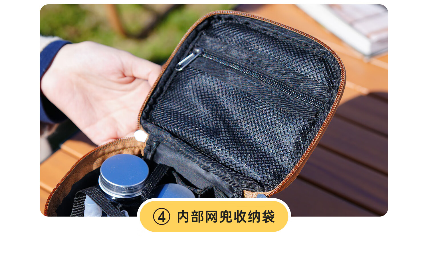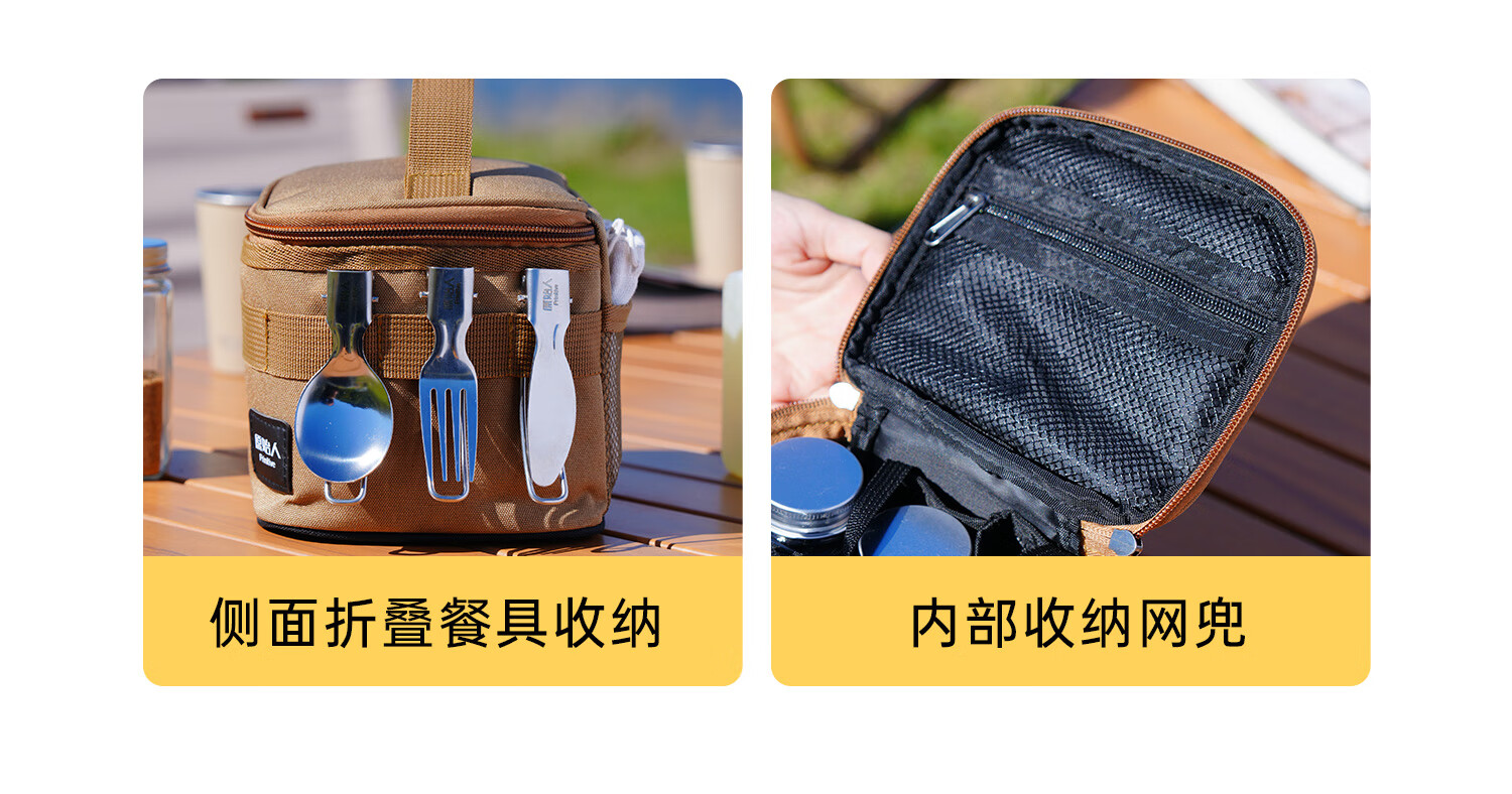 头****便携调料盒设计非常人性化,便于旅行时携带。 每个小格子可妆上各种调料器皿 ,野餐时的烹饪变得简单和有趣。材质耐用易清洗 配的餐具质感不错 商家服务好, 值得信赖和推荐荐荐