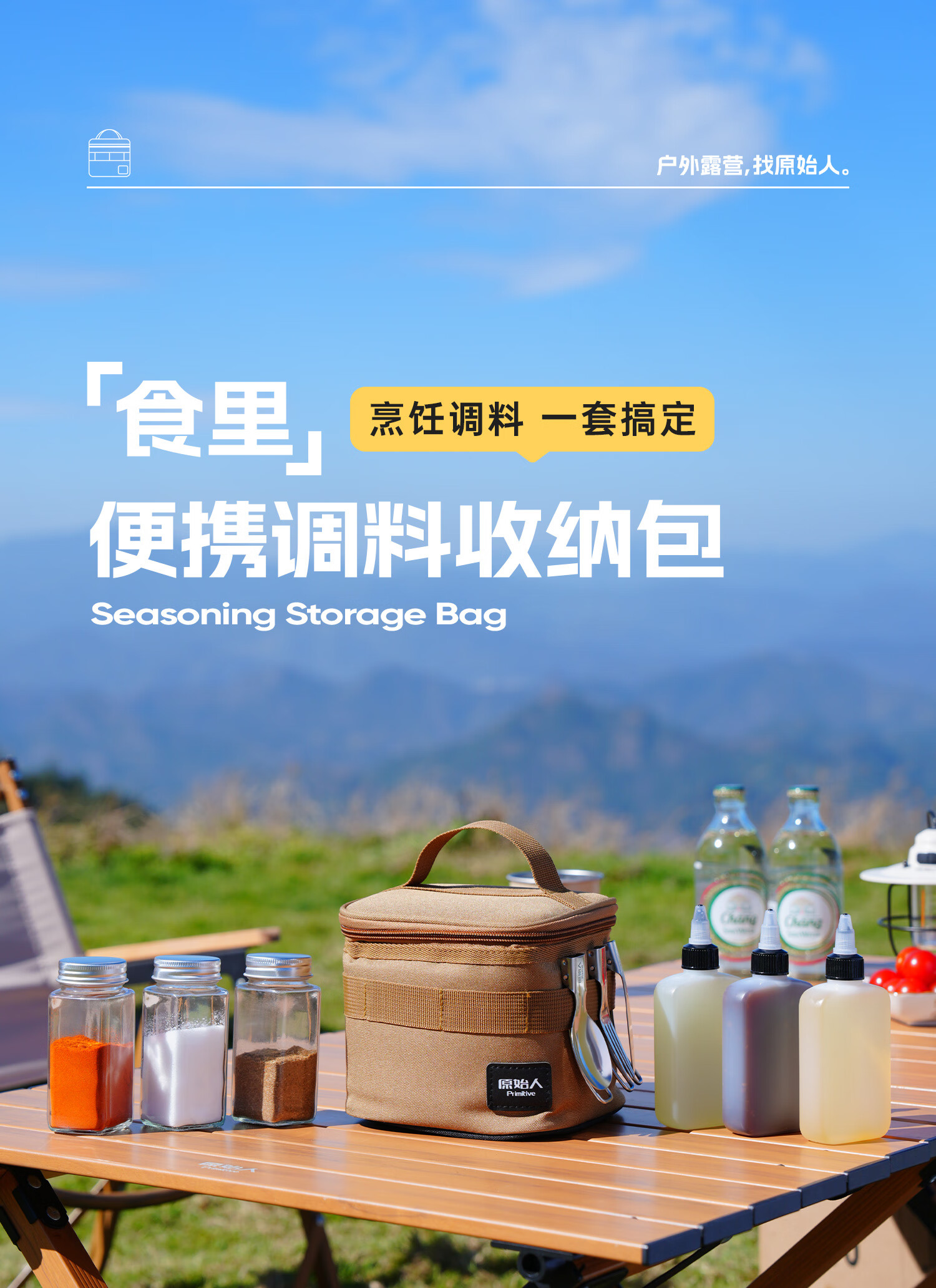 原始人户外便携式调料瓶套装露营调味盒组合收纳包烧烤油瓶分装瓶 调料收纳套装+餐具4件套