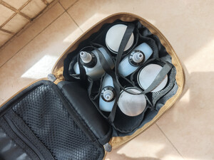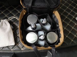 非常好,有三个装干粉的和三个装油液的,我买的这一款还有餐具时间套餐具非常精致,折叠起来非常的省空间,送的收纳包质量也非常得好,以后一提就可以出门了。