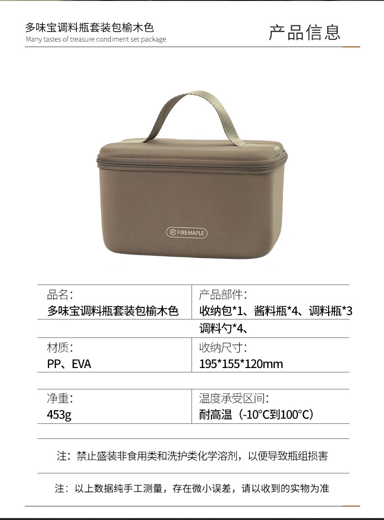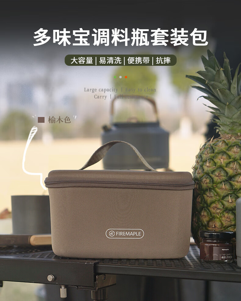 火枫(FIRE-MAPLE)多味宝户外调料瓶套装便携露营烧烤用具密封调味野炊作料罐收纳 多味宝调料瓶套装包-榆木色