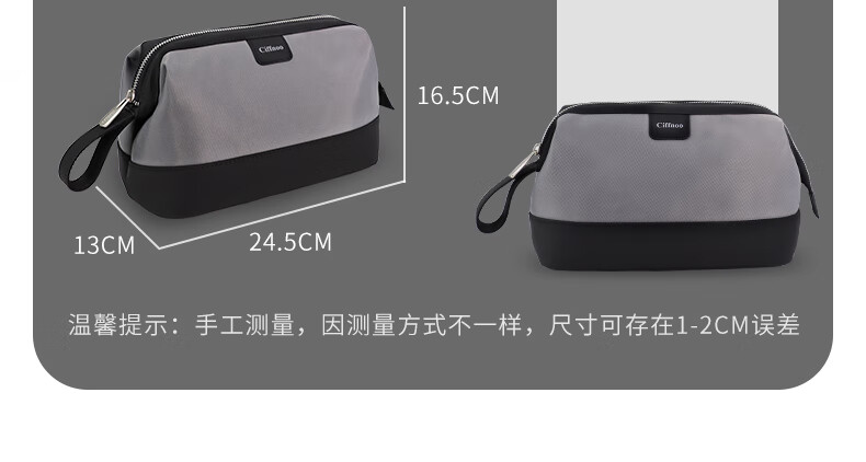 之前买了一款红色的,这次又买了一款灰色的,出门旅行的时候带一些洗漱用品,还是容量挺大的,装的够多,携带也很方便,袋子质量也不错