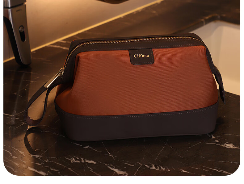 琪斐诺(Ciffnoo)洗漱包男士商务旅行出差高端防水化妆收纳包大容量手提洗漱袋便携 棕色含小号鞋袋