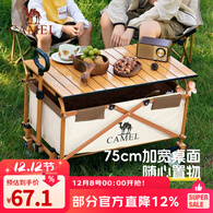 CAMEL露营车便携桌板可折叠营地车蛋卷桌户外餐桌碳钢户野炊装备 木纹色,176BJ00513