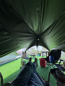 买了一堆黑狗的装备,主要是凑齐黑化的装备 防水效果:这个门帘是防水的,但是就是不能拉开作为一半的纱帘,这点没有挪客云界的好,其实差不多的类型 容纳人数:6人可以 适用场景:户外露营