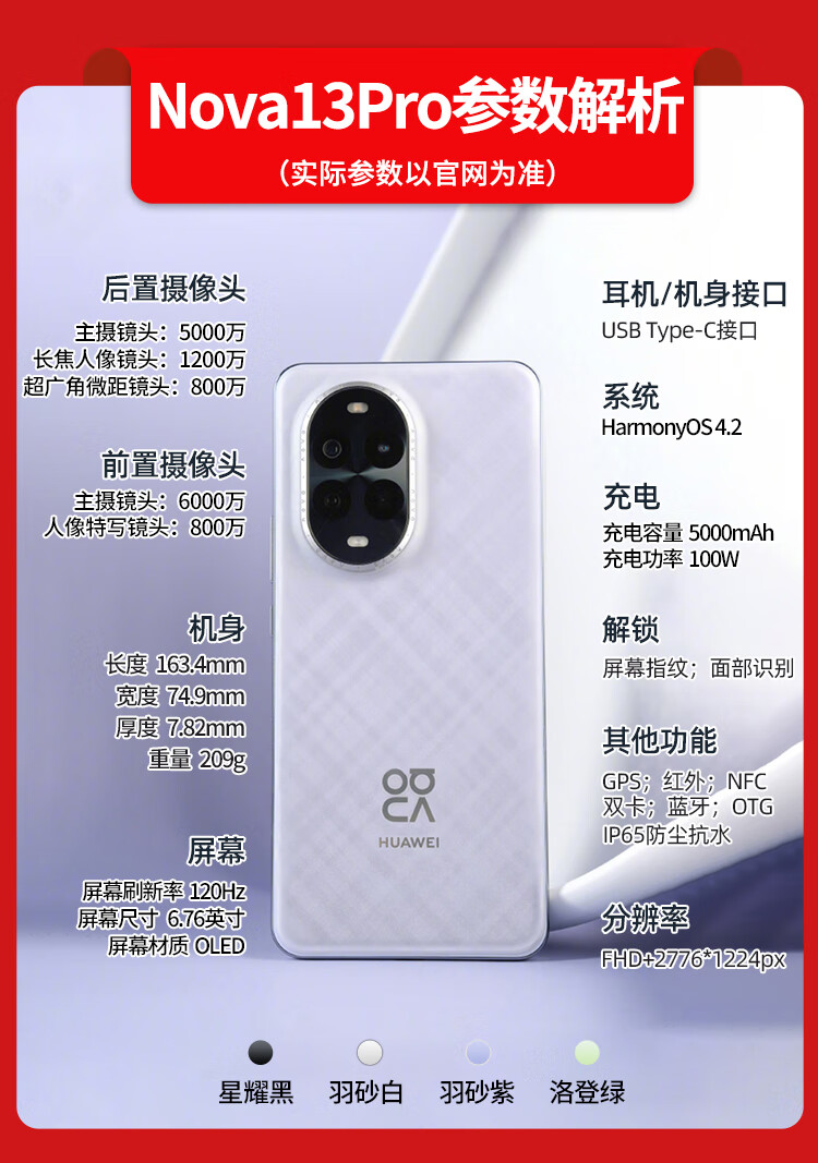 华为nova13Pro手机【24期免息】北斗卫星图片消息NFC红外遥控鸿蒙系统 洛登绿 512GB 简装已激【12期免息】+品牌66W快充套装