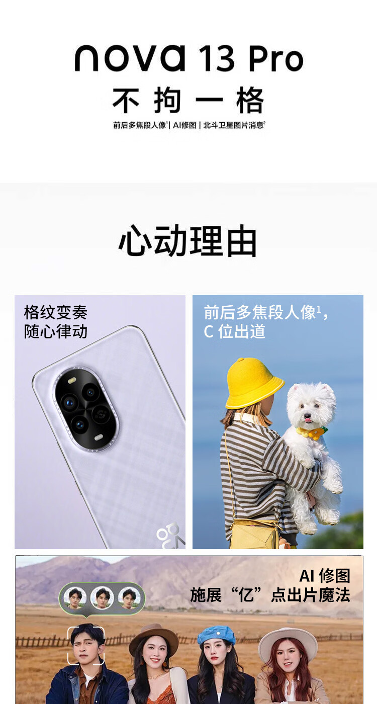 华为nova13【24期免息】新品手机鸿蒙系统北斗卫星图片消息麒麟8000处理器华为新机上市 羽砂白256G 12期免息