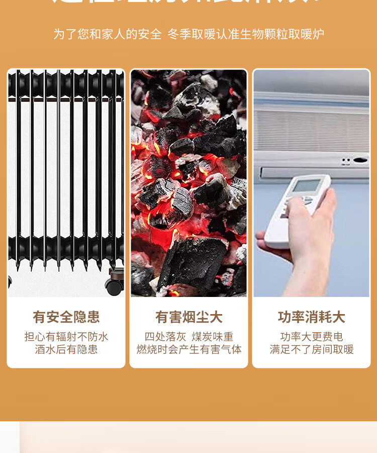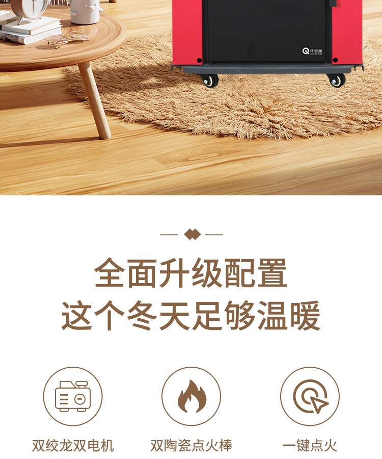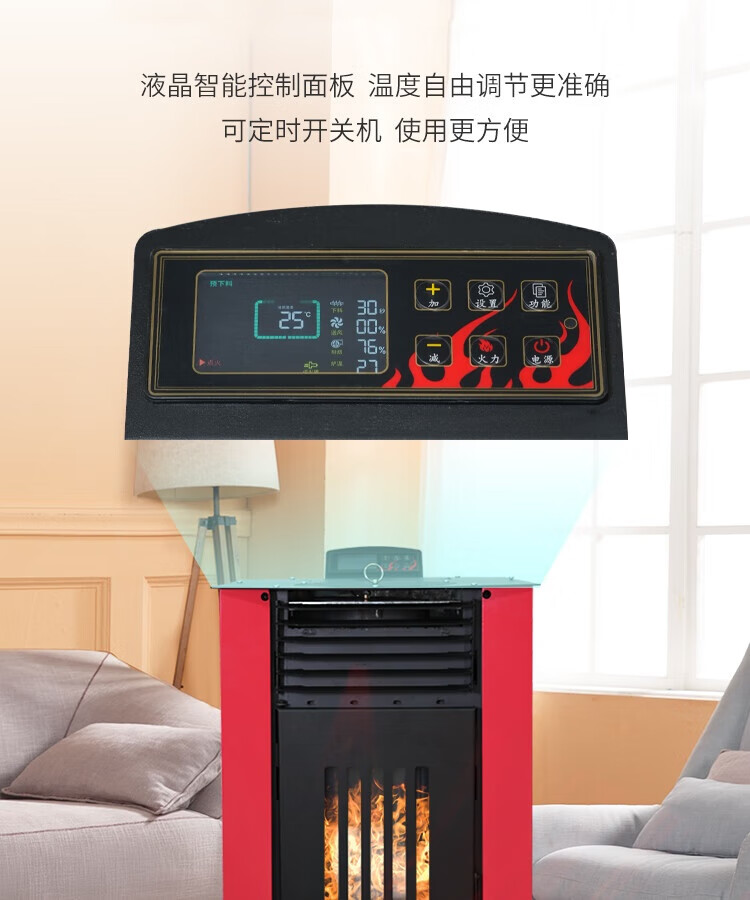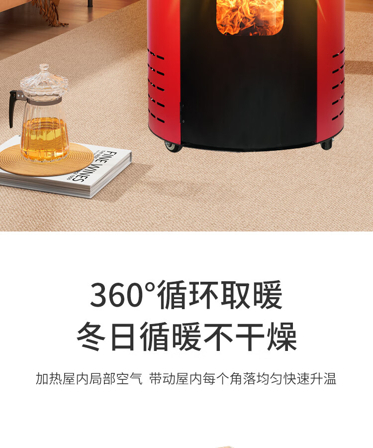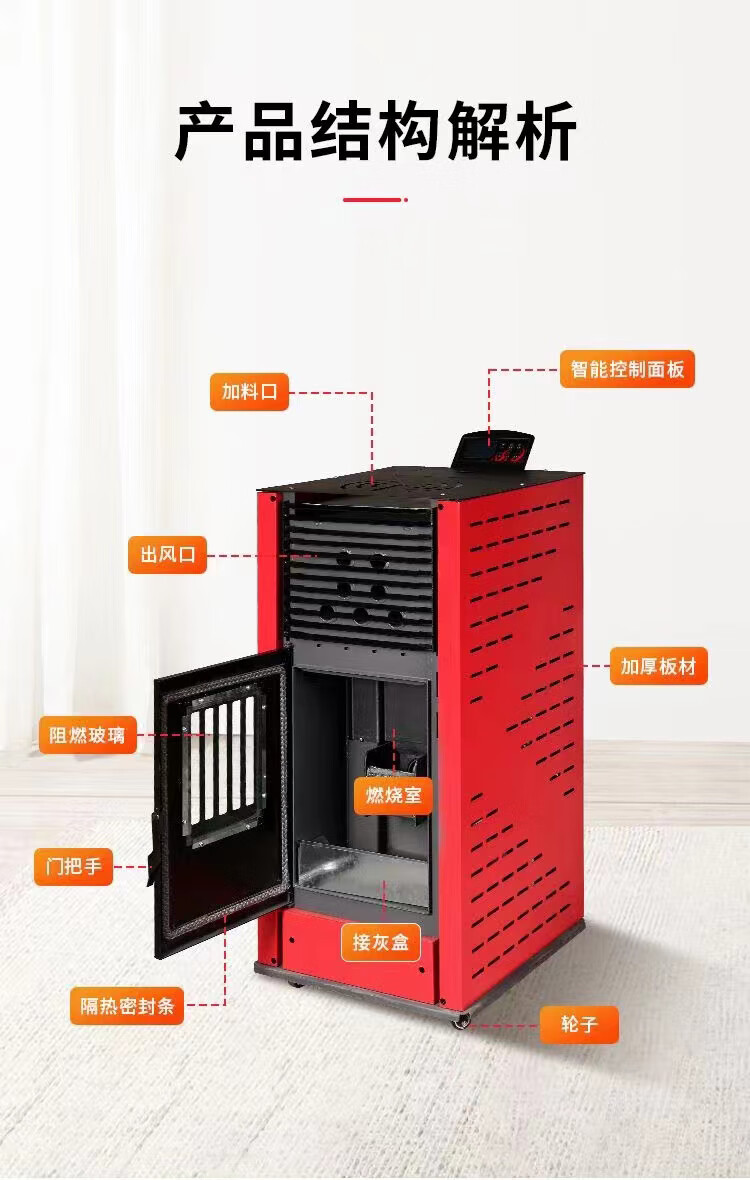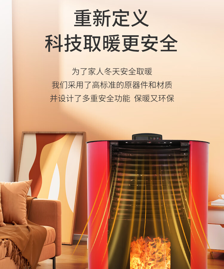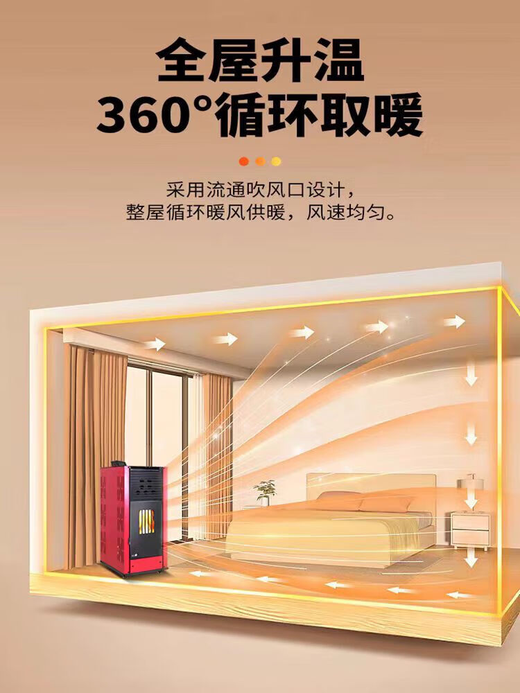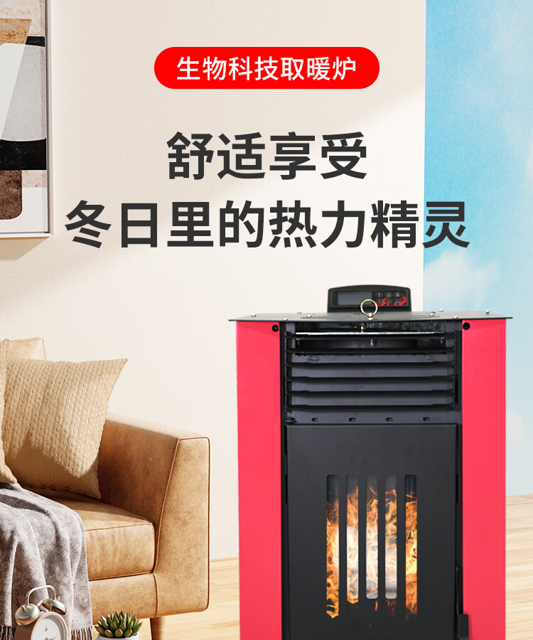 杰亚森生物质颗粒取暖炉家用锅炉环保取暖炉冬季智能小型室内无烟燃料 350型圆柱型取暖炉【300平左右】