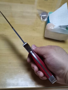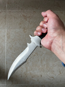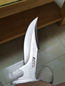 手感不错,有刃口但是不锋利,需要自行打磨,打磨之后锋利度明显提高。 全长26厘米,刃长13厘米,刀背4mm