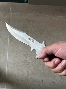 很满意的一把刀。贯穿全身,一体成型,份量充足,拿在手里有坠手感。刃口锋利,日常切割毫无压力。自带刀鞘,完美贴合,造型美观。收到货后有一种爱不释手的感觉。是收藏及野外游玩随身携带的佳品。