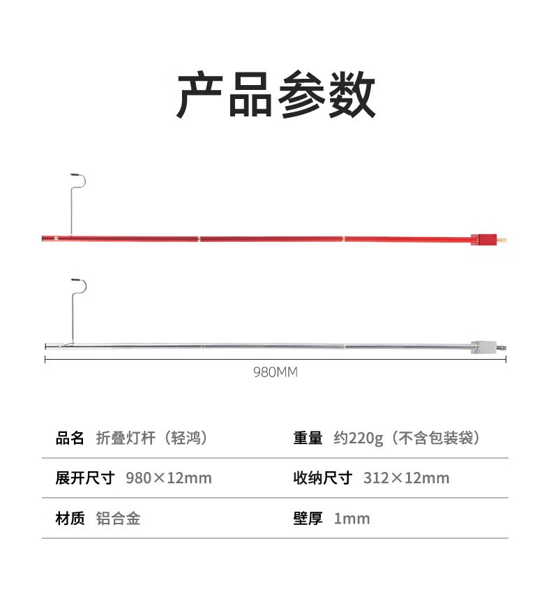 THOUS WINDS千风户外M10折叠双头灯杆架营地灯挂勾架铝合金支架可拆便携架杆 M10折叠双头轻量灯杆架 黑色